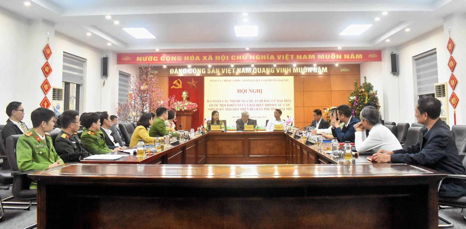 Kinhtedothi - Đảng ủy – HĐND – UBND – Ủy ban MTTQ Việt Nam phường Đại Mỗ vừa tổ chức hội nghị rà soát, đánh giá toàn diện công tác chuẩn bị cho cuộc bầu cử đại biểu Quốc hội khóa XVI và đại biểu Hội đồng nhân dân các cấp nhiệm kỳ 2026–2031 trên địa bàn, nhằm bảo đảm kỳ bầu cử diễn ra an toàn, dân chủ, đúng pháp luật và thực sự trở thành ngày hội của toàn dân.