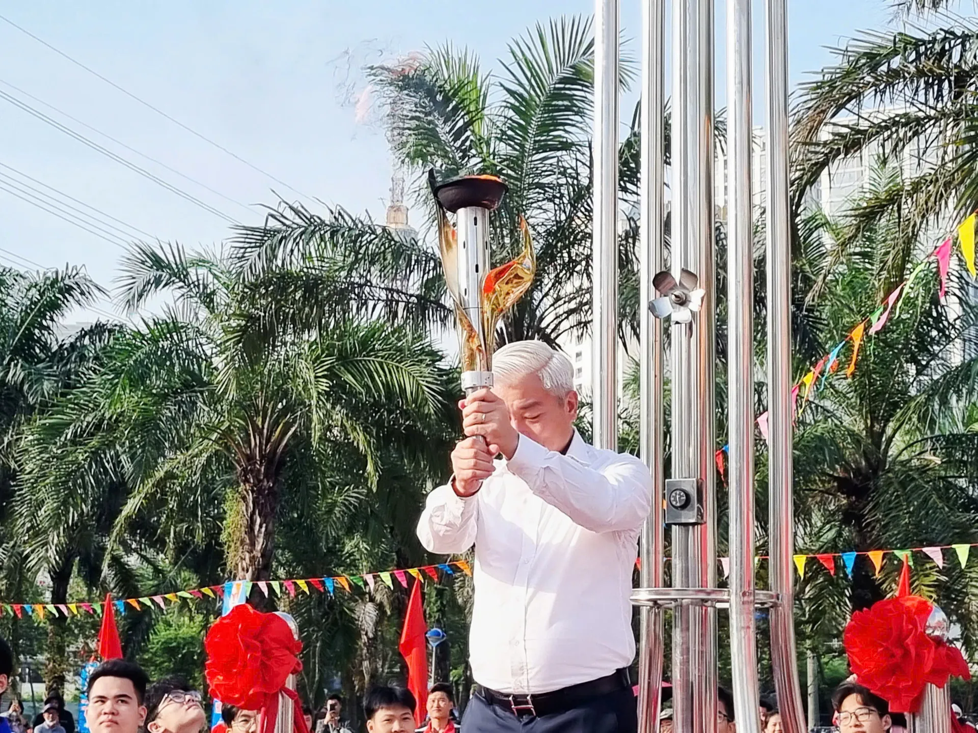 Lễ khai mạc bắt đầu bằng màn rước đuốc thiêng liêng, biểu tượng của tinh thần thể thao và ý chí vươn lên. Ngọn đuốc được rước từ Phòng truyền thống phường Đại Mỗ bởi 3 vận động viên tiêu biểu cùng 16 vận động viên phong trào, sau đó được Bí thư Đảng ủy, Chủ tịch HĐND phường Đại Mỗ - Mai Trọng Thái thắp sáng tại sân khấu chính, đánh dấu thời khắc khai hội.
