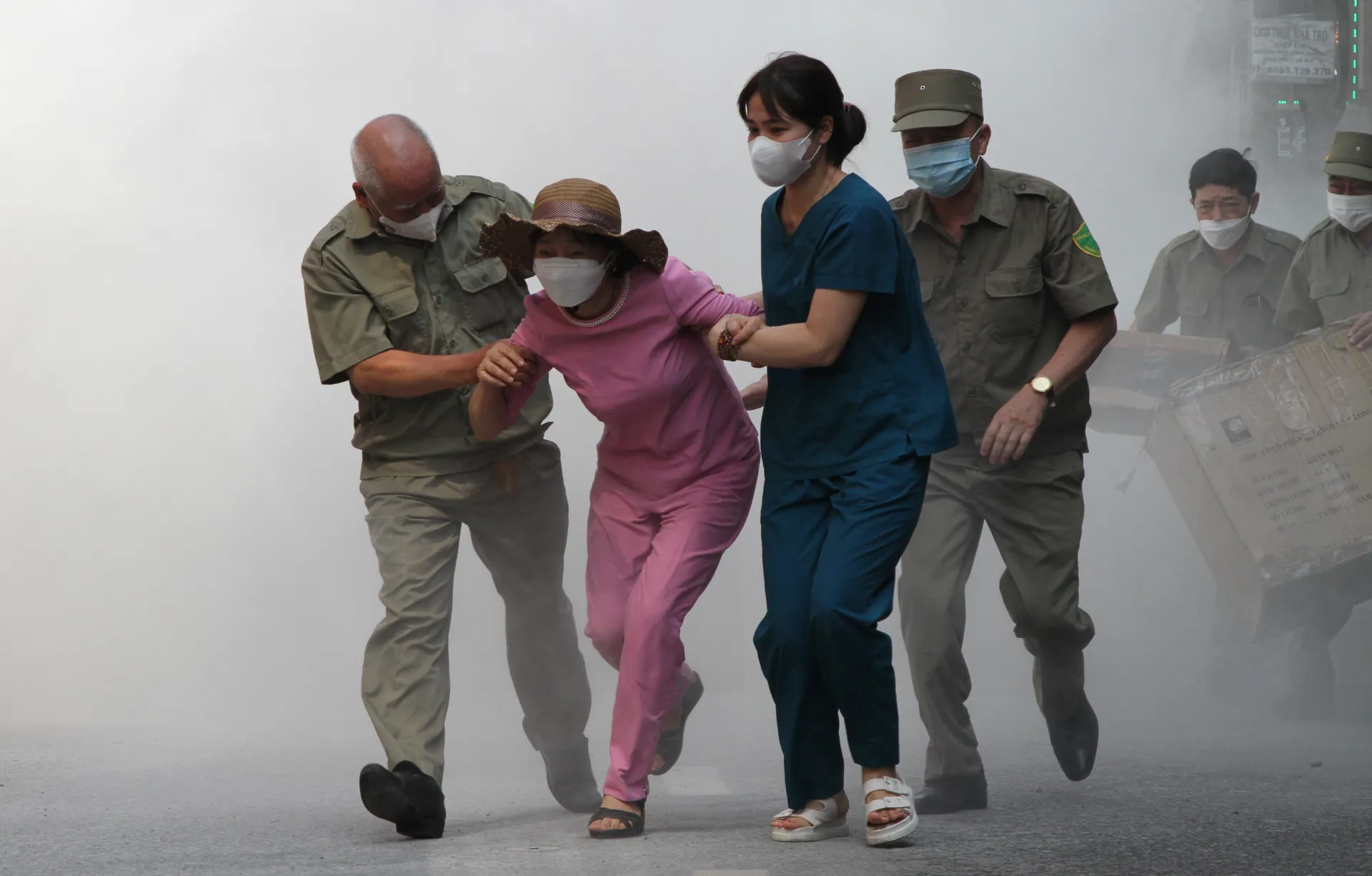 Ngay sau khi phát hiện cháy tại nhà bên cạnh, toàn bộ Tổ liên gia an toàn PCCC gồm 5 hộ gia đình liền kề đã sử dụng bình chữa cháy đã được trang bị và tiến hành chữa cháy theo phương châm 4 tại chỗ; đồng thời thông báo đến các hộ dân trong Tổ dân phố và UBND - Công an phường và gọi cứu hỏa 114.