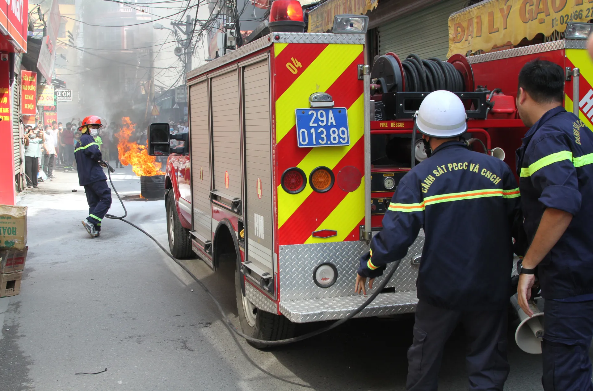 Ngay sau khi nhận được tin báo, các lực lượng của UBND phường, Công an phường và lực lượng cảnh sát PCCC& CNCH Công an quận Hoàng Mai cùng với các xe chuyên dụng và phương tiện PCCC đã có mặt tại hiện trường để thực hiện việc cứu người, cứu tài sản và chữa cháy theo các tình huống đã dự kiến.