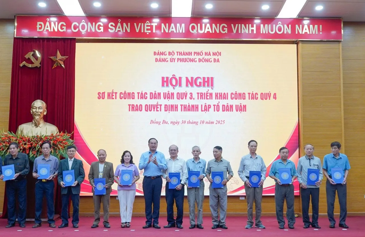 Tại hội nghị, Đảng ủy phường Đống Đa đã công bố và trao Quyết định thành lập 59 Tổ Dân vận ở các khu dân cư, thể hiện quyết tâm chính trị trong việc đổi mới, nâng tầm công tác dân vận theo hướng chuyên nghiệp, sâu sát và hiệu quả hơn. Các Tổ Dân vận có vai trò nòng cốt trong việc tuyên truyền, vận động Nhân dân, nắm bắt tâm tư, nguyện vọng, phản ánh kiến nghị, góp phần thực hiện hiệu quả Quy chế dân chủ ở cơ sở.