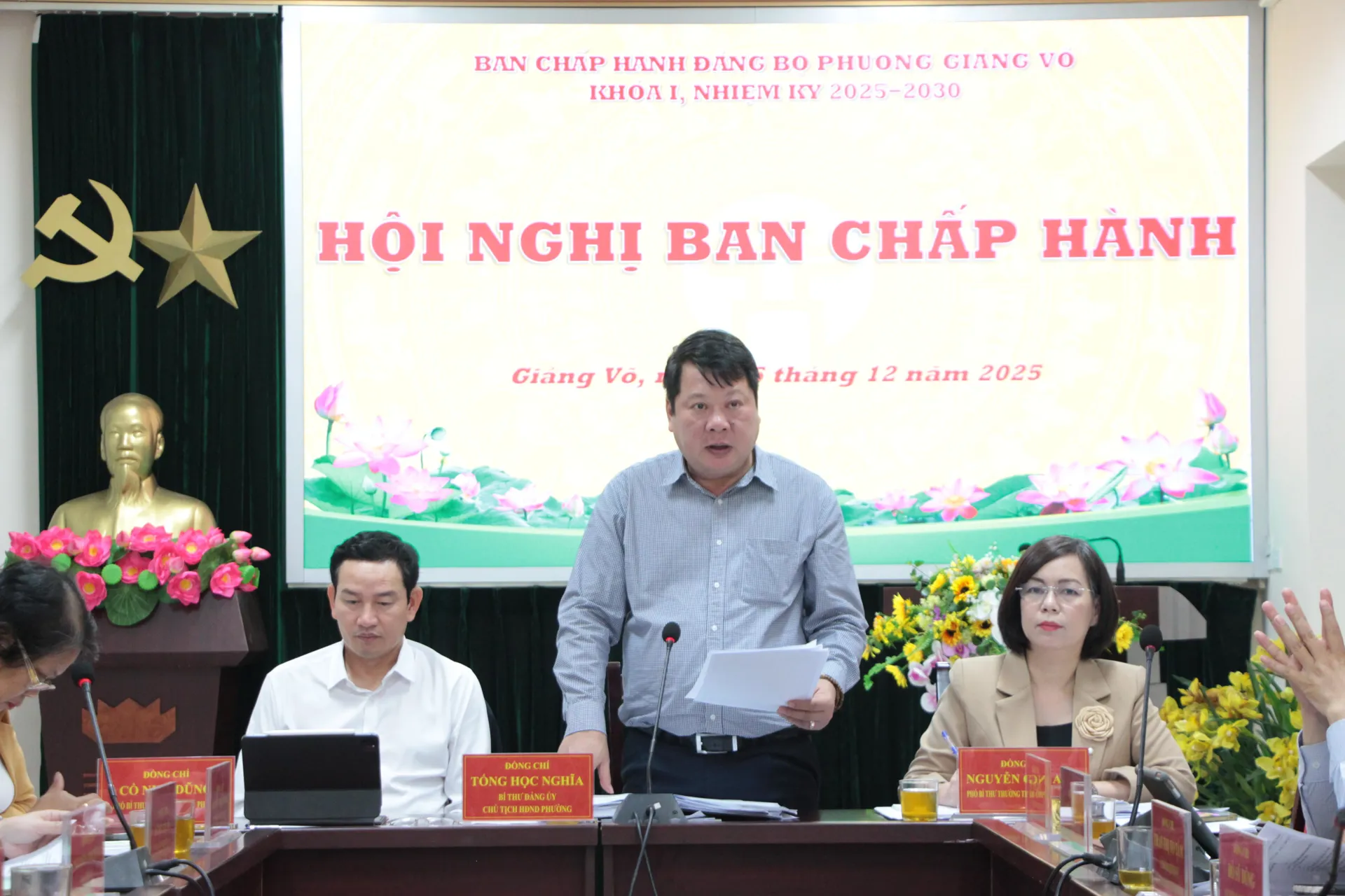 Phát biểu kết luận tại hội nghị, Bí thư Đảng ủy, Chủ tịch HĐND phường Giảng Võ Tống Học Nghĩa nhấn mạnh, về cơ bản, phường đã hoàn thành các mục tiêu, nhiệm vụ, chỉ tiêu được giao trong năm 2025, chuẩn bị sẵn sàng cho phương hướng thực hiện các nhiệm vụ trọng tâm được đề ra trong năm 2026.