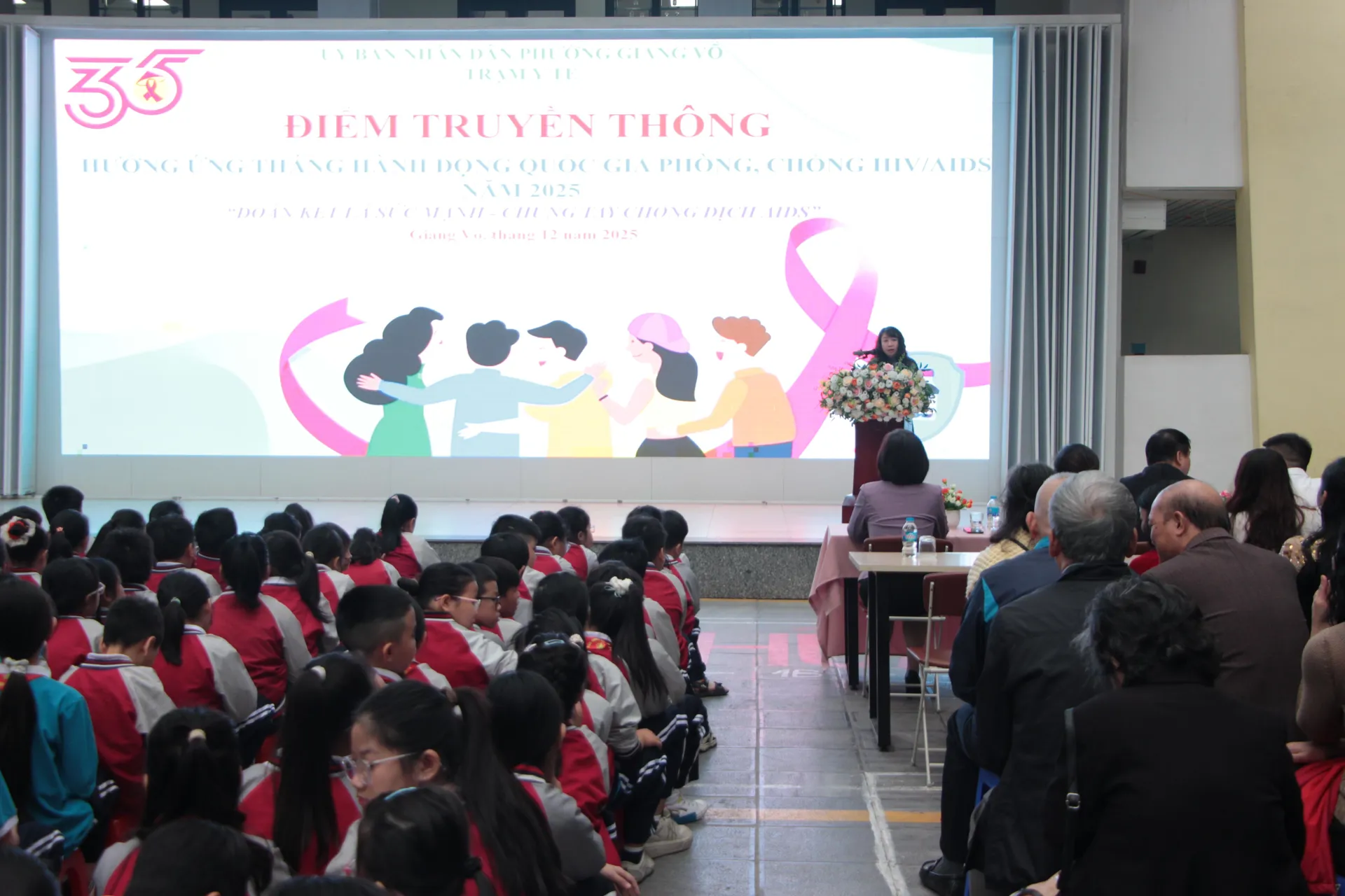 Với chủ đề “Đoàn kết là sức mạnh – chung tay chấm dứt dịch bệnh AIDS”, nhân Tháng hành động quốc gia về phòng, chống HIV/AIDS năm 2025 phường Giảng Võ tiếp tục tập trung vào xóa bỏ kỳ thị, phân biệt đối xử và nâng cao nhận thức cộng đồng về HIV. Phường sẽ tăng cường các chiến dịch tuyên truyền, cung cấp thông tin chính xác về HIV, các biện pháp phòng ngừa, đặc biệt là khuyến khích cộng đồng tham gia xét nghiệm HIV tự nguyện, để kịp thời phát hiện và điều trị.