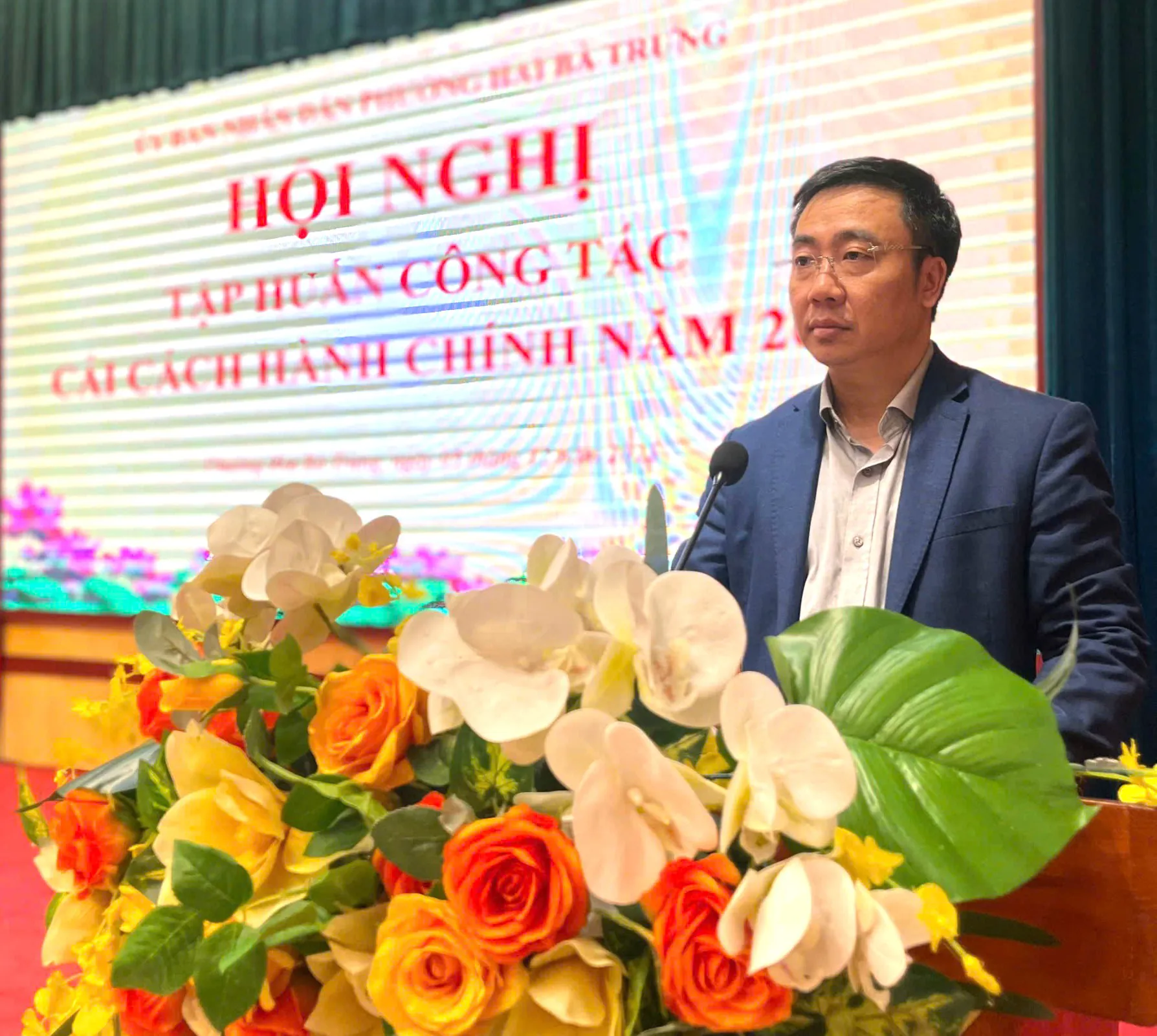 Trưởng Phòng Văn hóa - Xã hội UBND phường Hai Bà Trưng Trần Trung Kiên phát biểu tại Hội nghị tập huấn công tác cải cách hành chính năm 2025
