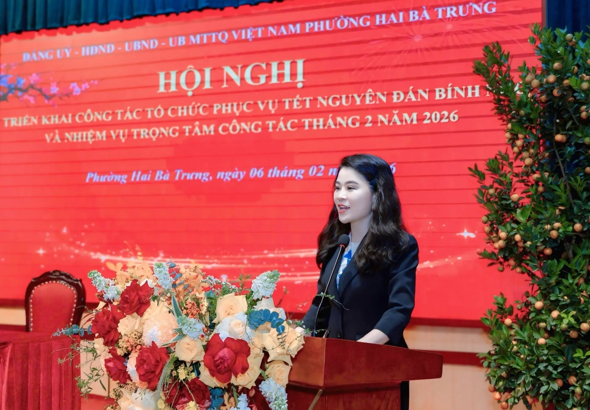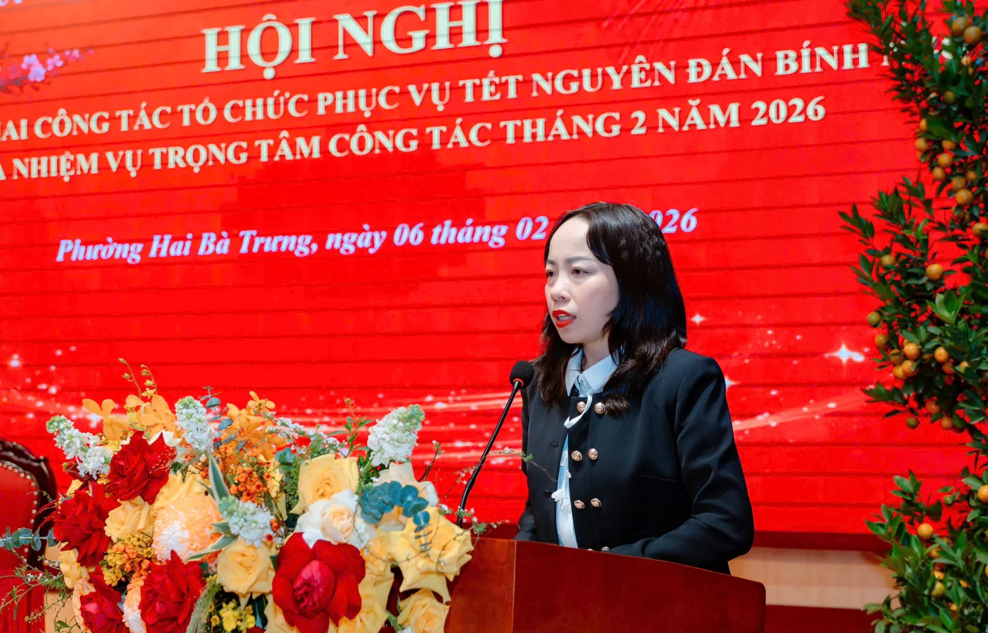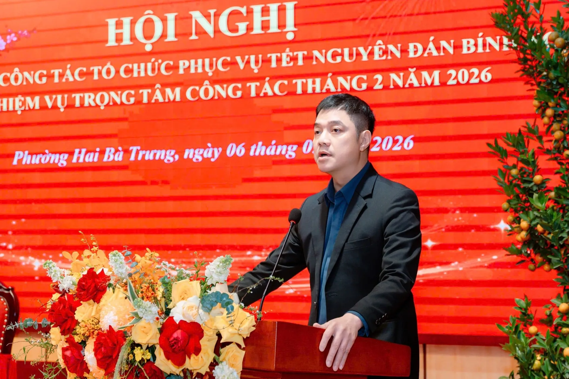Trong phần giao ban quý I/2026 với cán bộ TDP, Ủy viên Ban Thường vụ Đảng ủy, Phó Chủ tịch UBND phường Hai Bà Trưng Đỗ Phương Nga đã triển khai các nội dung phục vụ Tết nguyên đán Bính Ngọ 2026 và Phó Trưởng Công An phường Hai Bà Trưng Nguyễn Đức Chung triển khai khai kế hoạch bảo đảm an ninh trật tự, an toàn xã hội dịp Tết nguyên đán Bính Ngọ 2026 trên địa bàn phường.