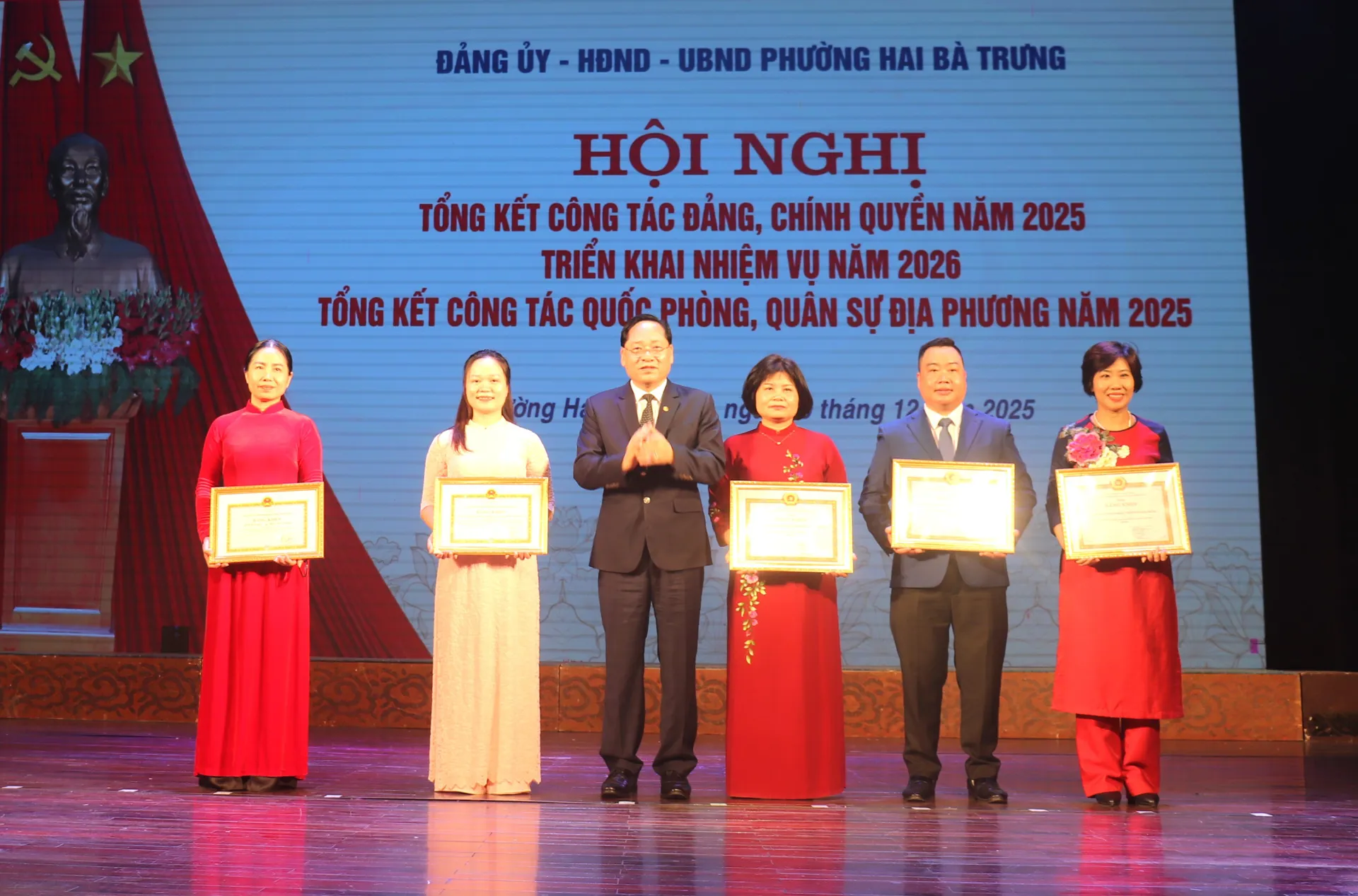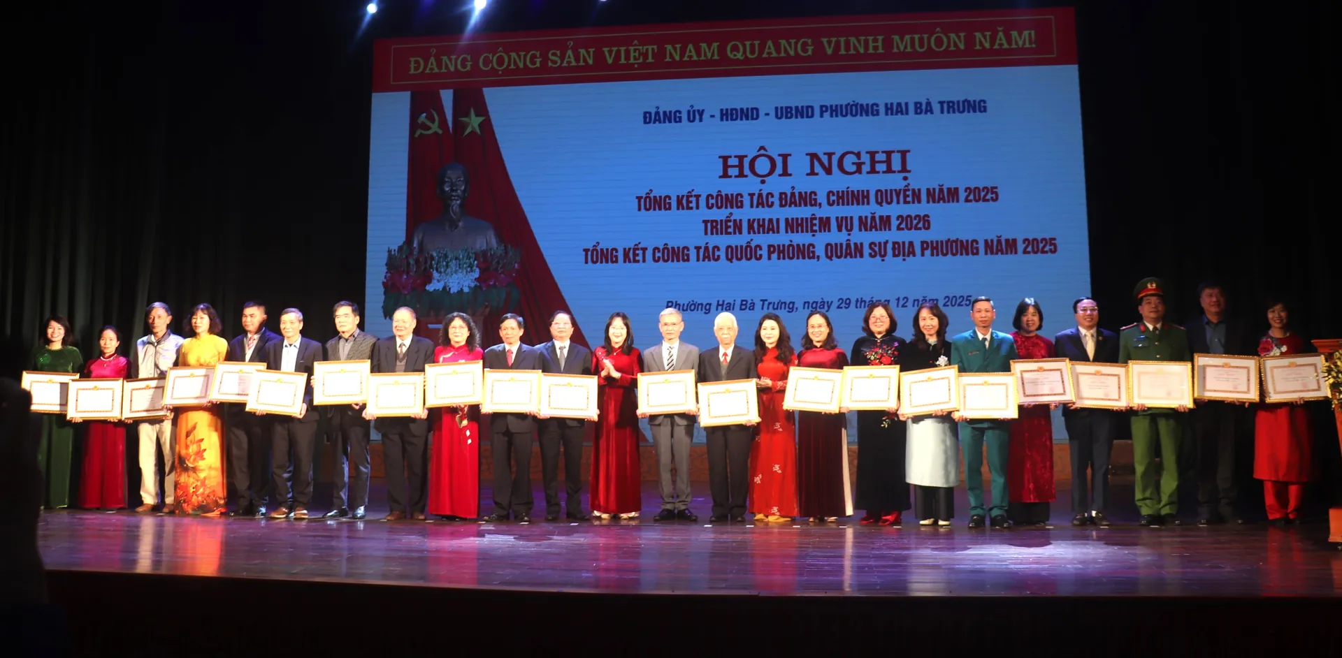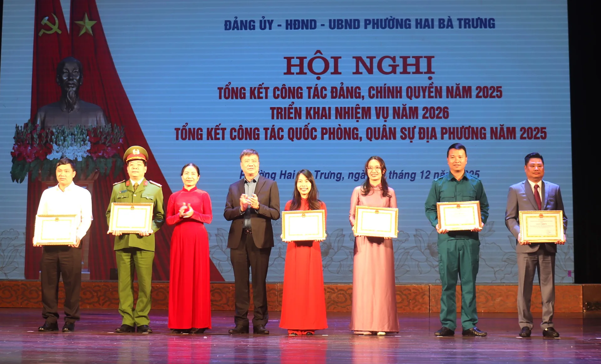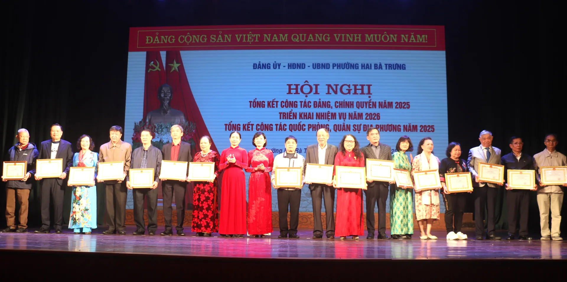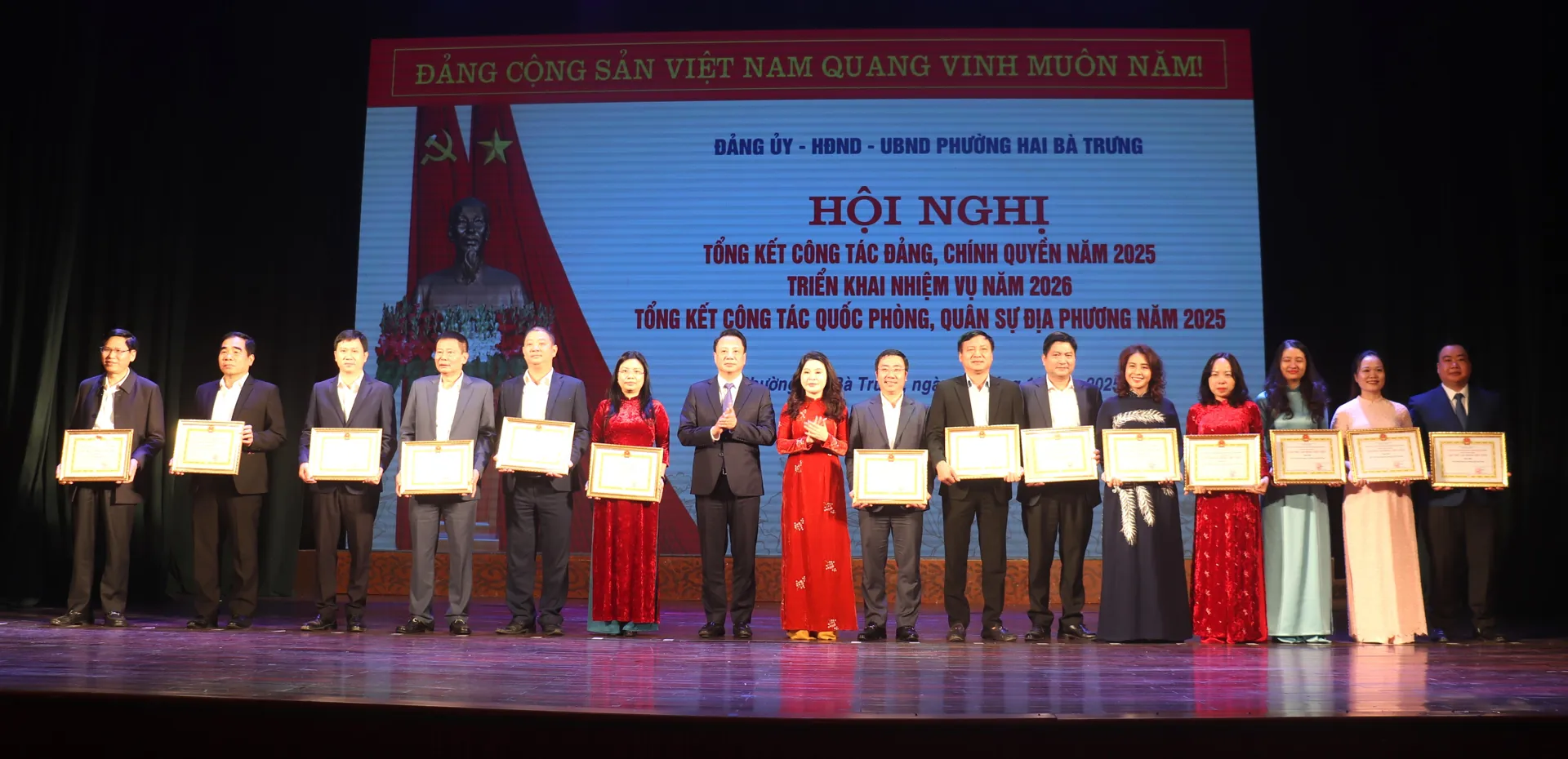 Tại Hội nghị, Đảng ủy, UBND phường Hai Bà Trưng đã biểu dương, khen thưởng 115 tập thể và 296 cá nhân thuộc phường có thành tích xuất sắc trên các mặt công tác năm 2025.