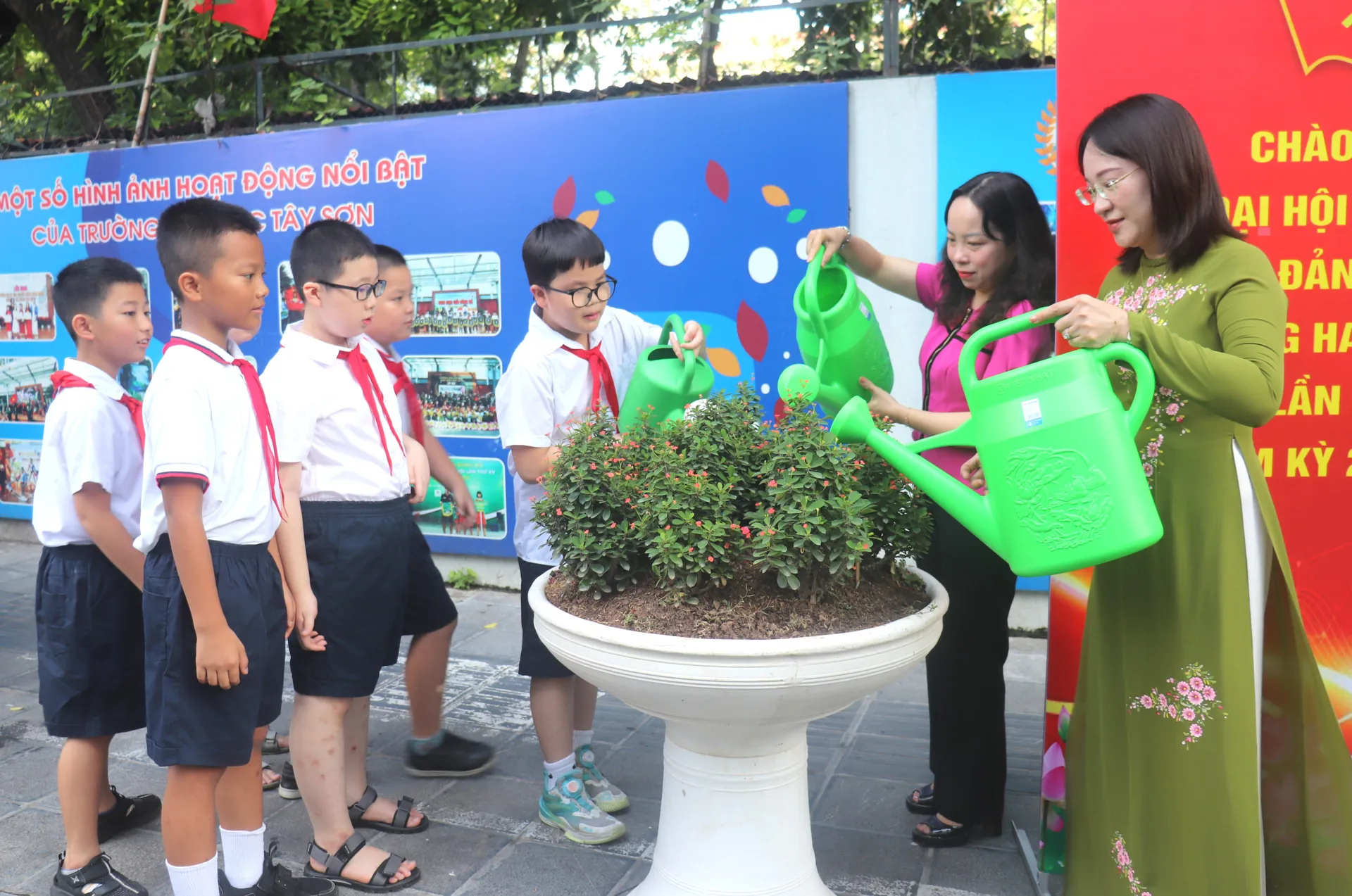 Nhà giáo Nguyễn Lệ Thủy - Hiệu trưởng trường Tiểu học Tây Sơn cho hay, trước thực trạng nơi đây là chân rác, tháng 7/2025, Ban Giám hiệu nhà trường và TDP đã kêu gọi xã hội hóa trong phụ huynh, học sinh và các hộ dân, kết quả được tổng số tiền 47 triệu đồng. Từ đó, nhà trường cùng cán bộ cơ sở triển khai tổng VSMT tại khu vực đoạn phố Lê Đại Hành và phố Nguyễn Đình Chiểu (cổng chính và cổng phụ của trường), đồng thời đầu tư 20 chậu cây, hoa đặt dọc 2 đoạn phố và bổ sung cây xanh trong trường.