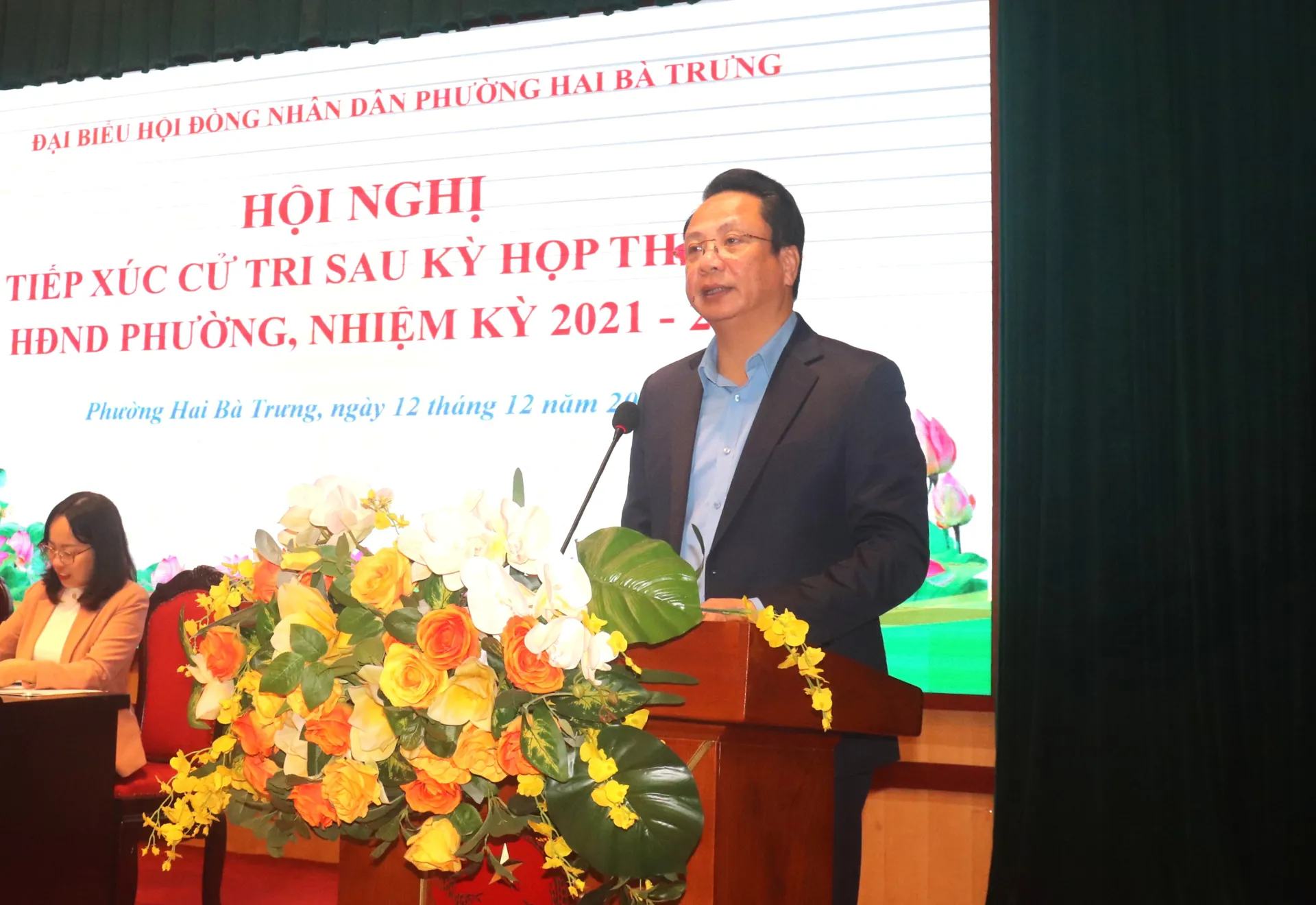 Thay mặt Tổ đại biểu HĐND phường, Phó Chủ tịch HĐND phường Nguyễn Thị Hồng Hạnh đã thông tin tới cử tri kết quả Kỳ họp thứ 3 HĐND phường Hai Bà Trưng nhiệm kỳ 2021-2026; Trưởng phòng Kinh tế, Hạ tầng và Đô thị phường Nguyễn Thùy Dương trình bày báo cáo của UBND phường trả lời kiến nghị của cử tri tại cuộc tiếp xúc cử tri trước Kỳ họp thứ 3 HĐND phường.