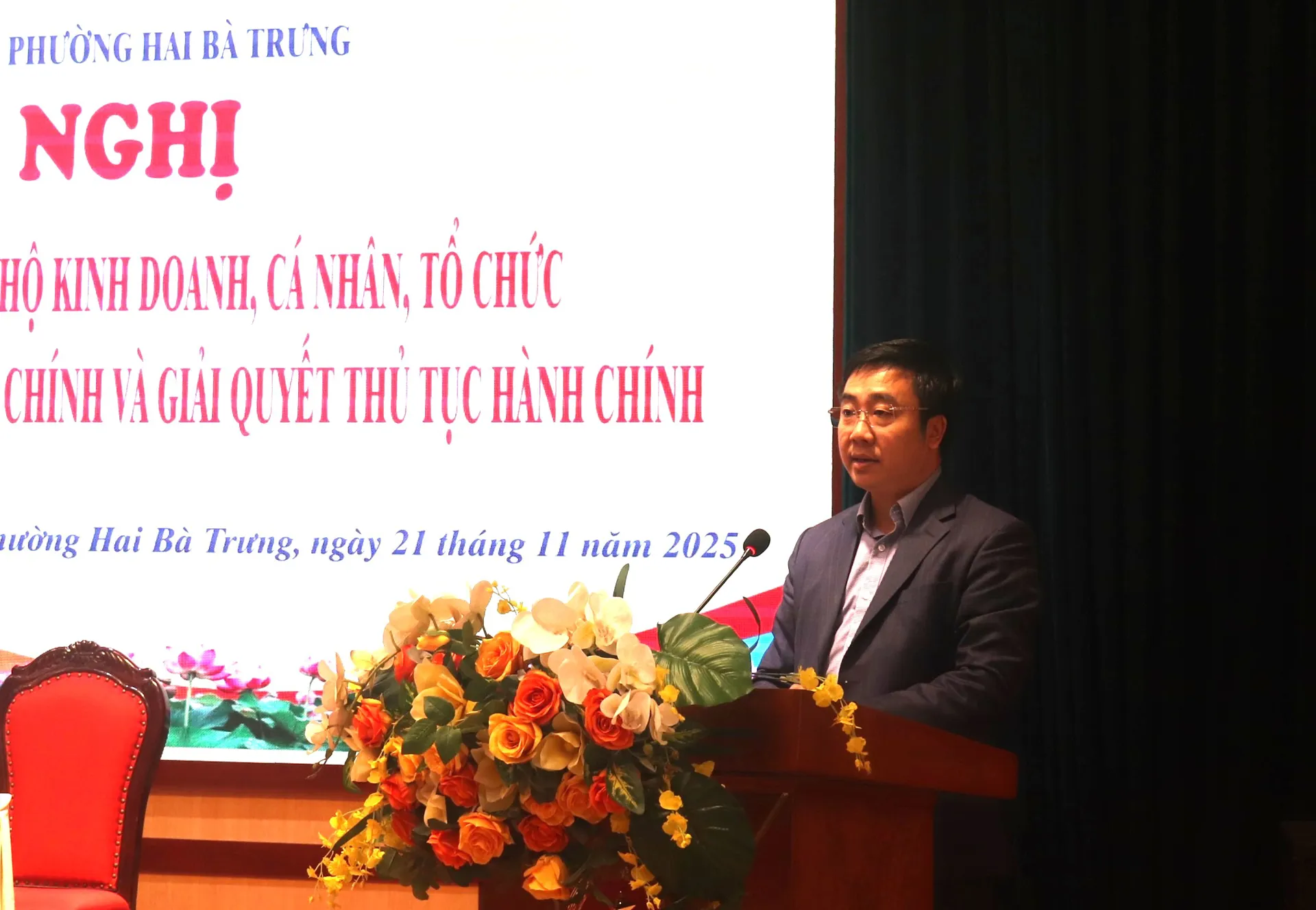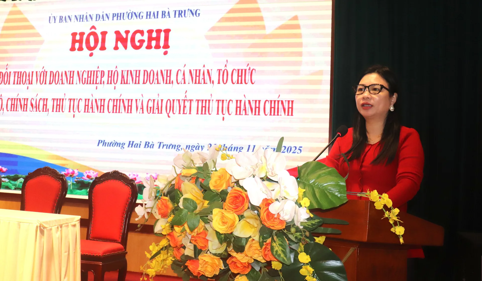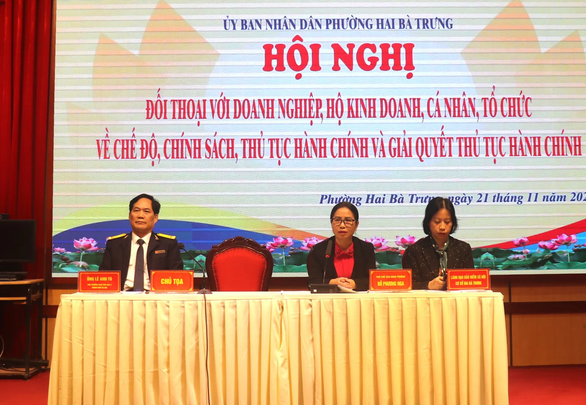 Sáng nay, 21/11, UBND phường Hai Bà Trưng tổ chức Hội nghị đối thoại với cá nhân, tổ chức, doanh nghiệp (DN), hộ kinh doanh về chế độ, chính sách, thủ tục hành chính (TTHC) và giải quyết TTHC.