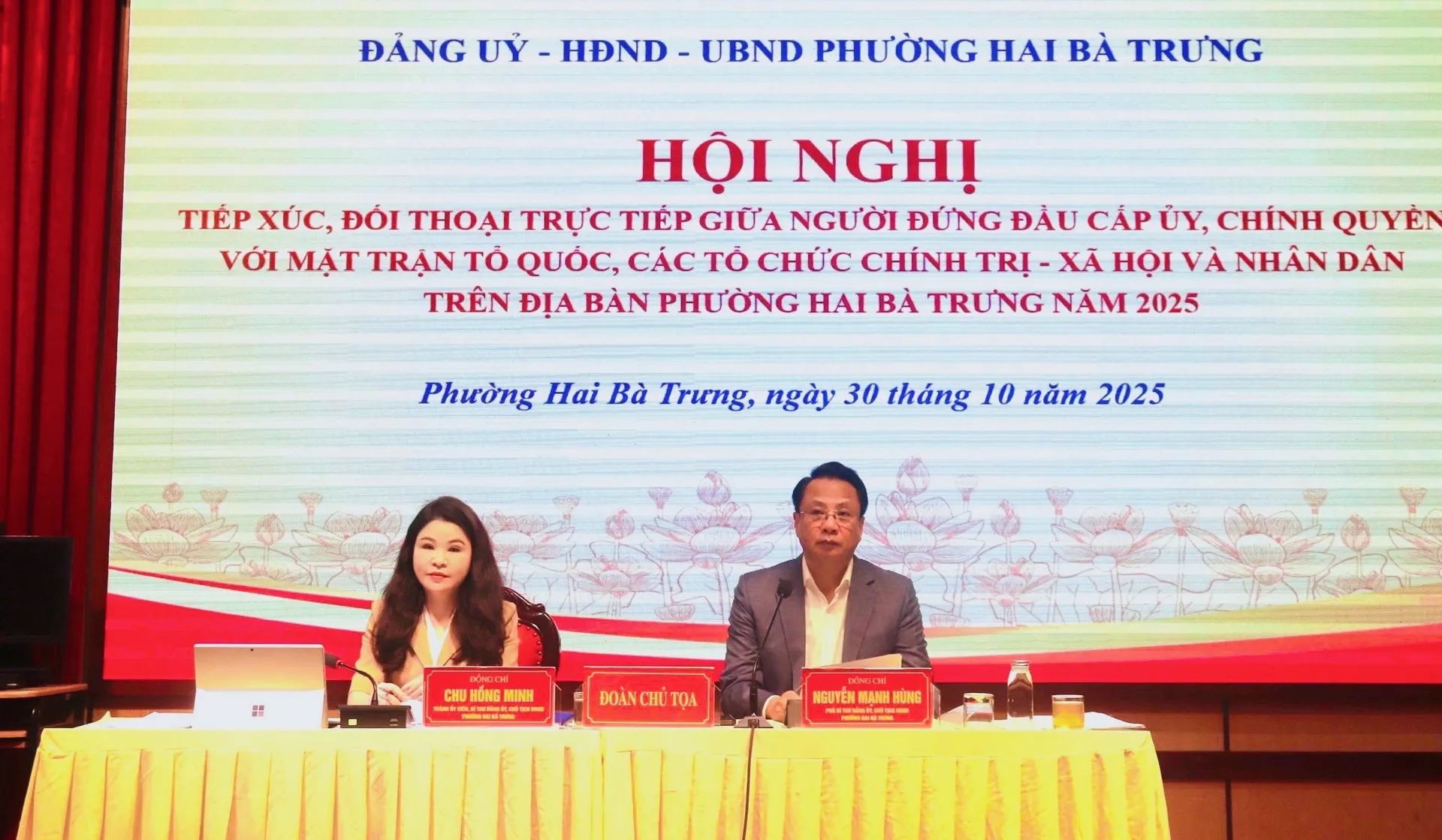 Chiều 30/10, Đảng ủy, HĐND, UBND phường Hai Bà Trưng tổ chức hội nghị tiếp xúc, đối thoại trực tiếp giữa người đứng đầu cấp ủy, chính quyền với Mặt trận Tổ quốc (MTTQ), các tổ chức chính trị - xã hội (CT-XH) và đại diện Nhân dân trên địa bàn phường năm 2025.