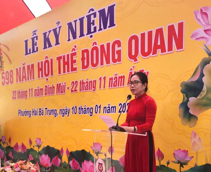 Chủ tịch Ủy ban MTTQ Việt Nam phường Hai Bà Trưng Nguyễn Hiền Phương trình bày diễn văn ôn lại truyền thống lịch sử Hội thề Đông Quan