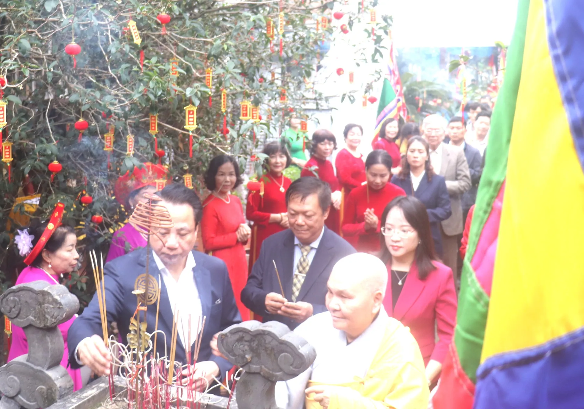 Các đại biểu, cán bộ, Nhân dân phường Hai Bà Trưng và du khách thập phương dâng hương tại đền thờ Vua Đế Thích