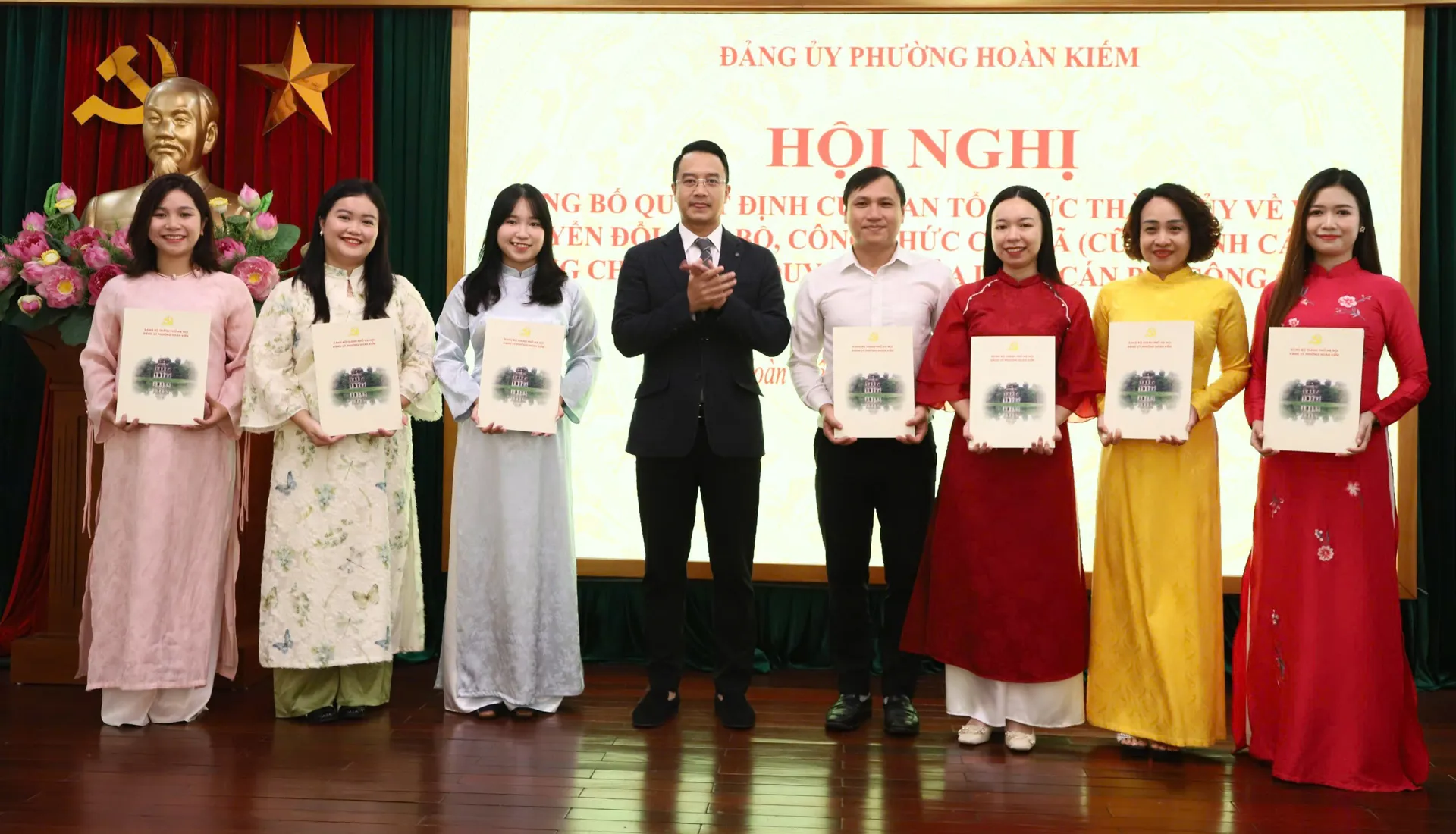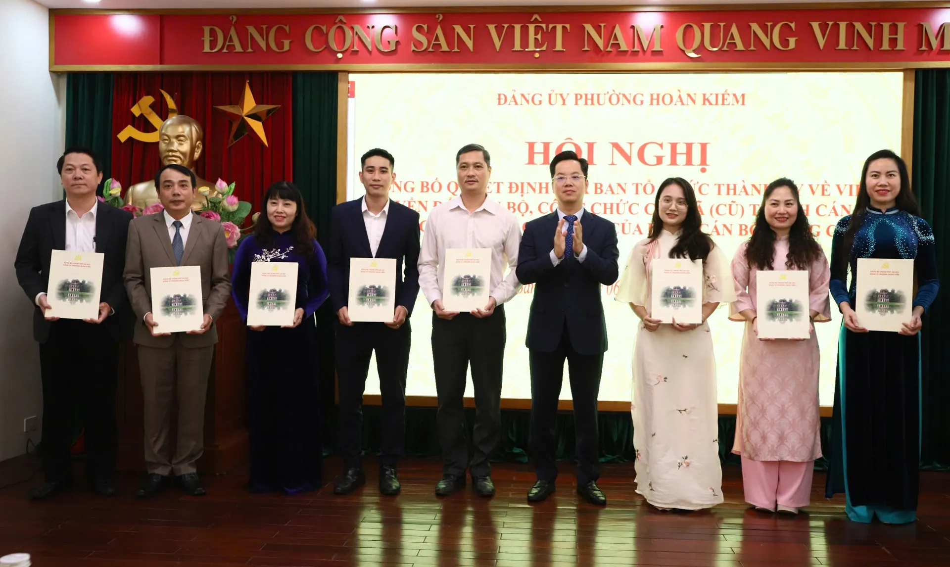 Thay mặt Ban Thường vụ Đảng ủy phường, Bí thư Đảng uỷ phường Hoàn Kiếm Vũ Đăng Định chúc mừng và chia vui với 25 cán bộ, công chức đã được Thành ủy, Ban Tổ chức Thành ủy phê duyệt đợt này. Đồng thời đề nghị thời gian tới các cán bộ, công chức phường tập trung thực hiện tốt 3 nhiệm vụ trọng tâm.