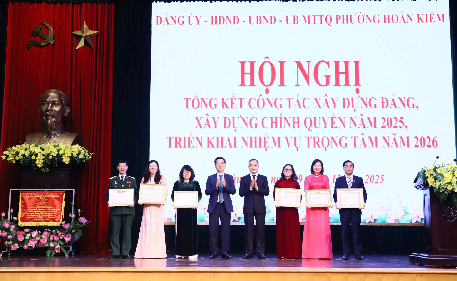 Tại hội nghị, nhiều tập thể, cá nhân có thành tích xuất sắc trong năm 2025 đã được biểu dương, khen thưởng, qua đó tạo khí thế thi đua sôi nổi, quyết tâm thực hiện thắng lợi các nhiệm vụ chính trị năm 2026, góp phần xây dựng phường Hoàn Kiếm phát triển bền vững, văn minh, hiện đại.