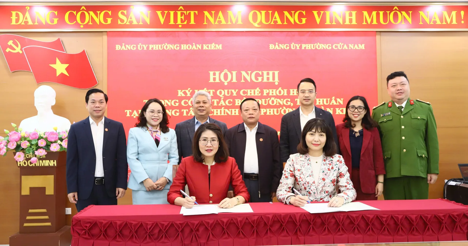 Phường Hoàn Kiếm và phường Cửa Nam ký kết Quy chế phối hợp công tác bồi dưỡng, tập huấn tại Trung tâm Chính trị