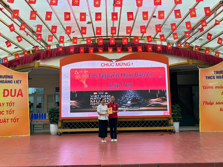 Kinhtedothi - Sau MC, ca sĩ nhí Hoàng Trung Hải thành danh cấp độ quốc gia, trường THCS Hoàng Liệt tiếp tục “trình làng” Huy chương Vàng nhạc cụ đàn tranh Vietnam National Music Festival Nguyễn Hoài Bảo An (học sinh lớp 7A8). Mảnh đất Hoàng Liệt đã và đang trở thành nơi ươm mầm cho nhiều tài năng nghệ thuật nhỏ tuổi cho Thủ đô và quốc gia.