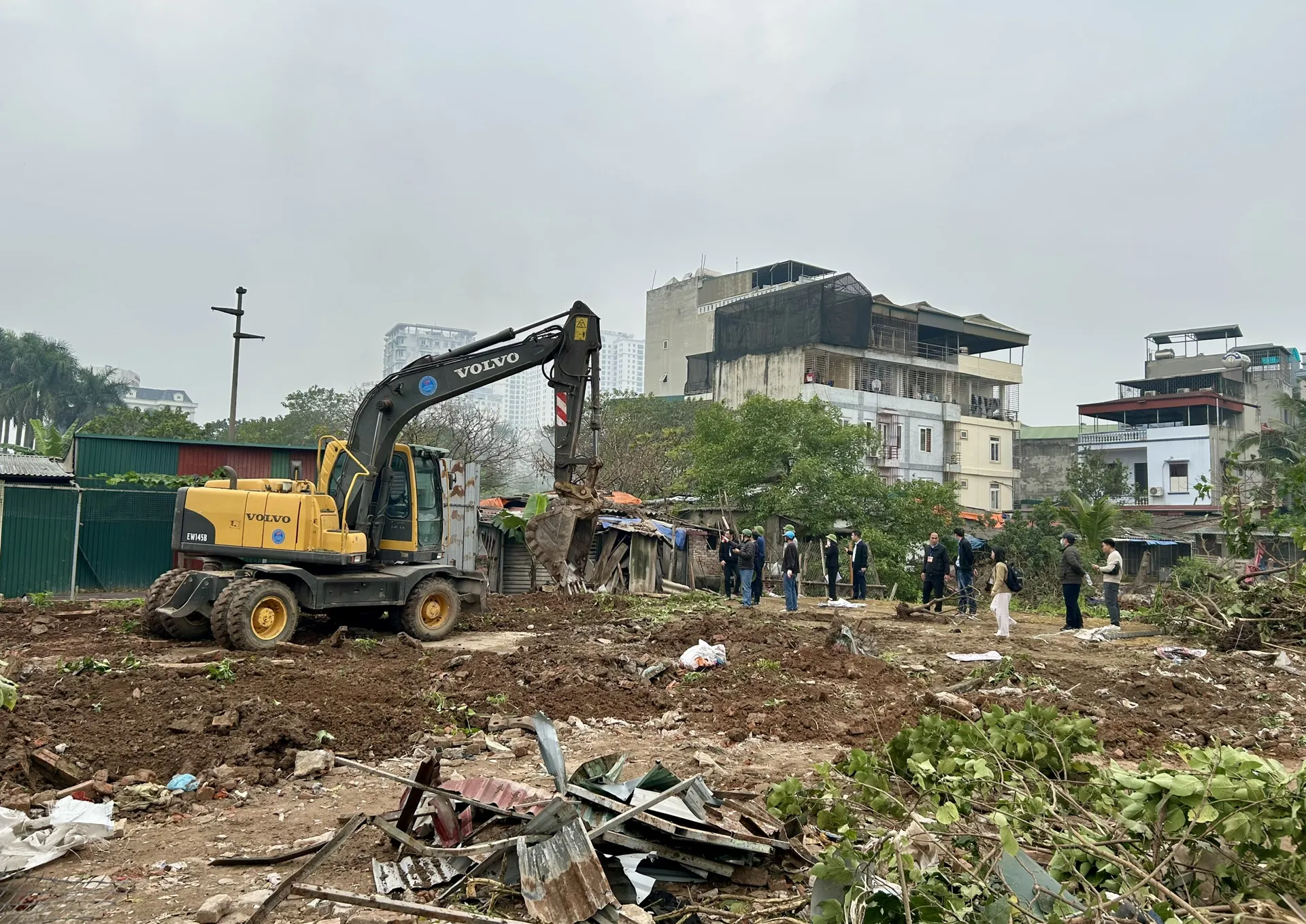 Phường Hoàng Mai triển khai cưỡng chế thu hồi đất đối với các hộ gia đình, cá nhân không chấp hành Quyết định. Ảnh: Trần Oanh.