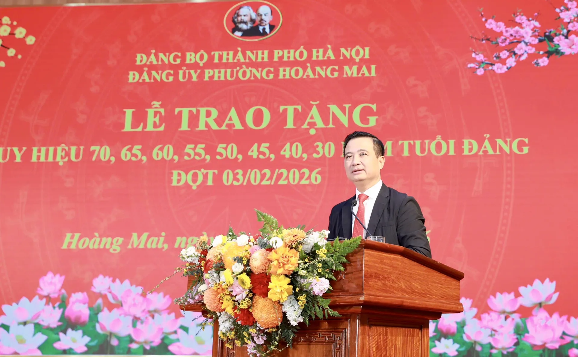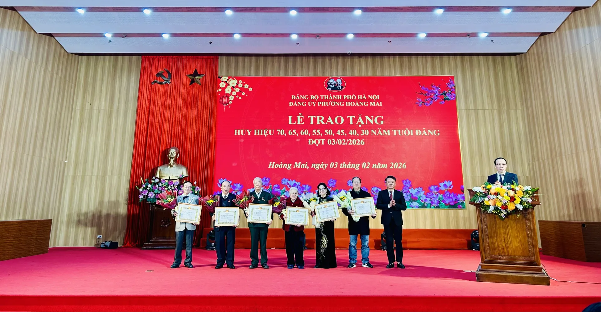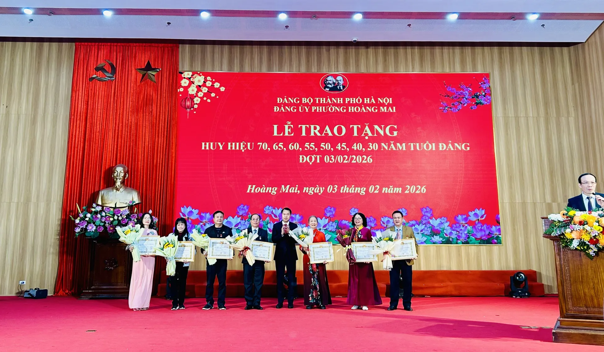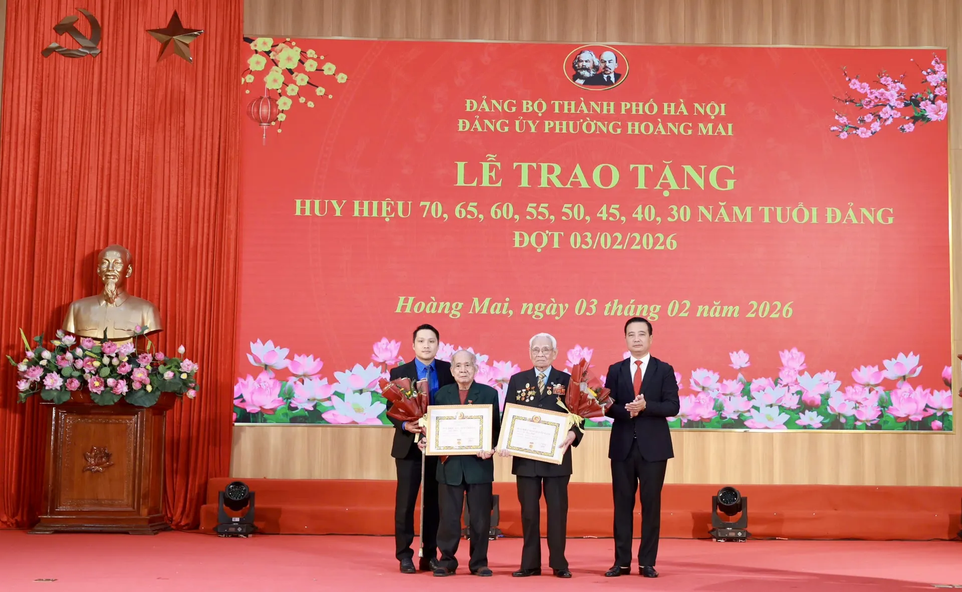 Ngay sau Lễ kỷ niệm, Ban Chấp hành Đảng bộ phường Hoàng Mai tổ chức Lễ trao tặng Huy hiệu 70, 65, 60, 55, 50, 45, 40, 30 năm tuổi Đảng đợt 3/2/2026, cho 83 đồng chí đảng viên đã có quá trình cống hiến vì sự nghiệp quang vinh của Đảng.