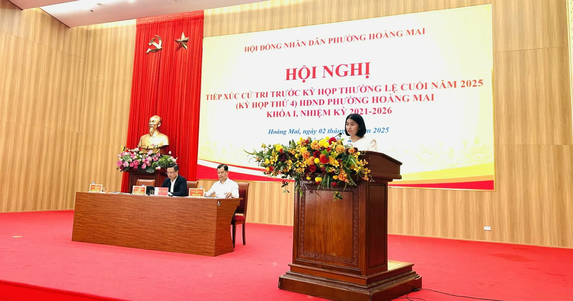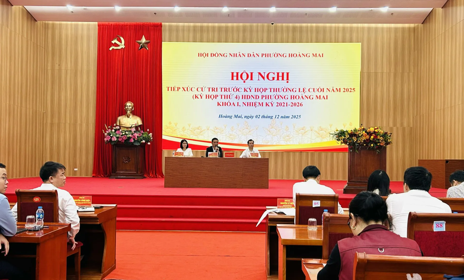 Kinhtedothi - Chiều 2/12, HĐND phường Hoàng Mai tổ chức hội nghị tiếp xúc cử tri trước kỳ họp thường lệ cuối năm 2025 (Kỳ họp thứ 4) nhiệm kỳ 2021 – 2026. Bí thư Đảng ủy, Chủ tịch HĐND phường Hoàng Mai Nguyễn Xuân Linh chủ trì hội nghị.