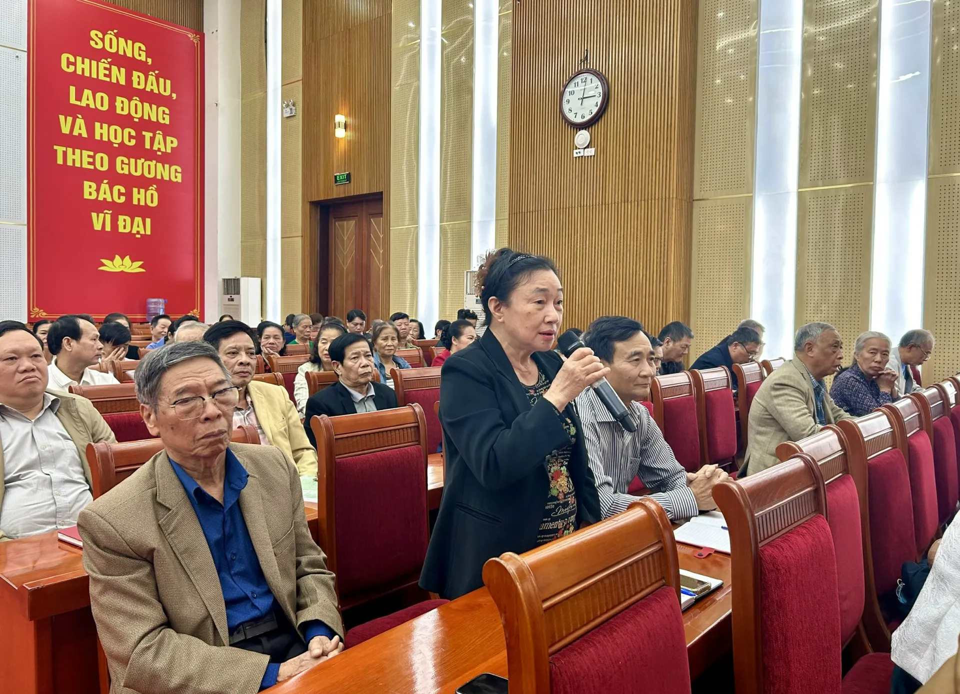 Cử tri đề xuất những vấn đề dân sinh tới lãnh đạo phường Hoàng Mai. Ảnh: Trần Oanh