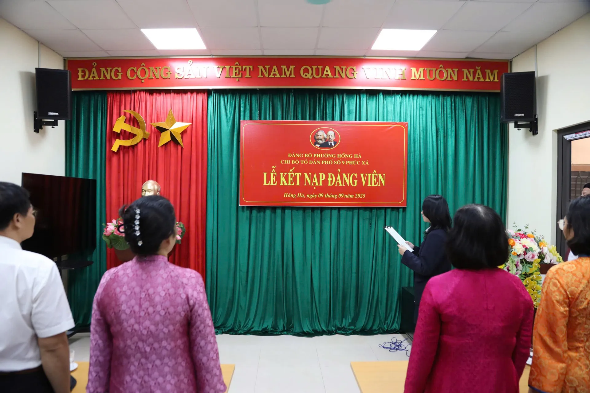 Tại buổi lễ, Bí thư Chi bộ Tổ dân phố số 9 đã công bố và trao Quyết định kết nạp đảng viên cho quần chúng Đỗ Hà Phương. Dưới cờ Tổ quốc, cờ Đảng và chân dung Chủ tịch Hồ Chí Minh, đảng viên mới đã đọc lời tuyên thệ, thể hiện quyết tâm tuyệt đối trung thành với mục tiêu, lý tưởng của Đảng; không ngừng rèn luyện, phấn đấu, góp phần xây dựng Chi bộ ngày càng trong sạch, vững mạnh.