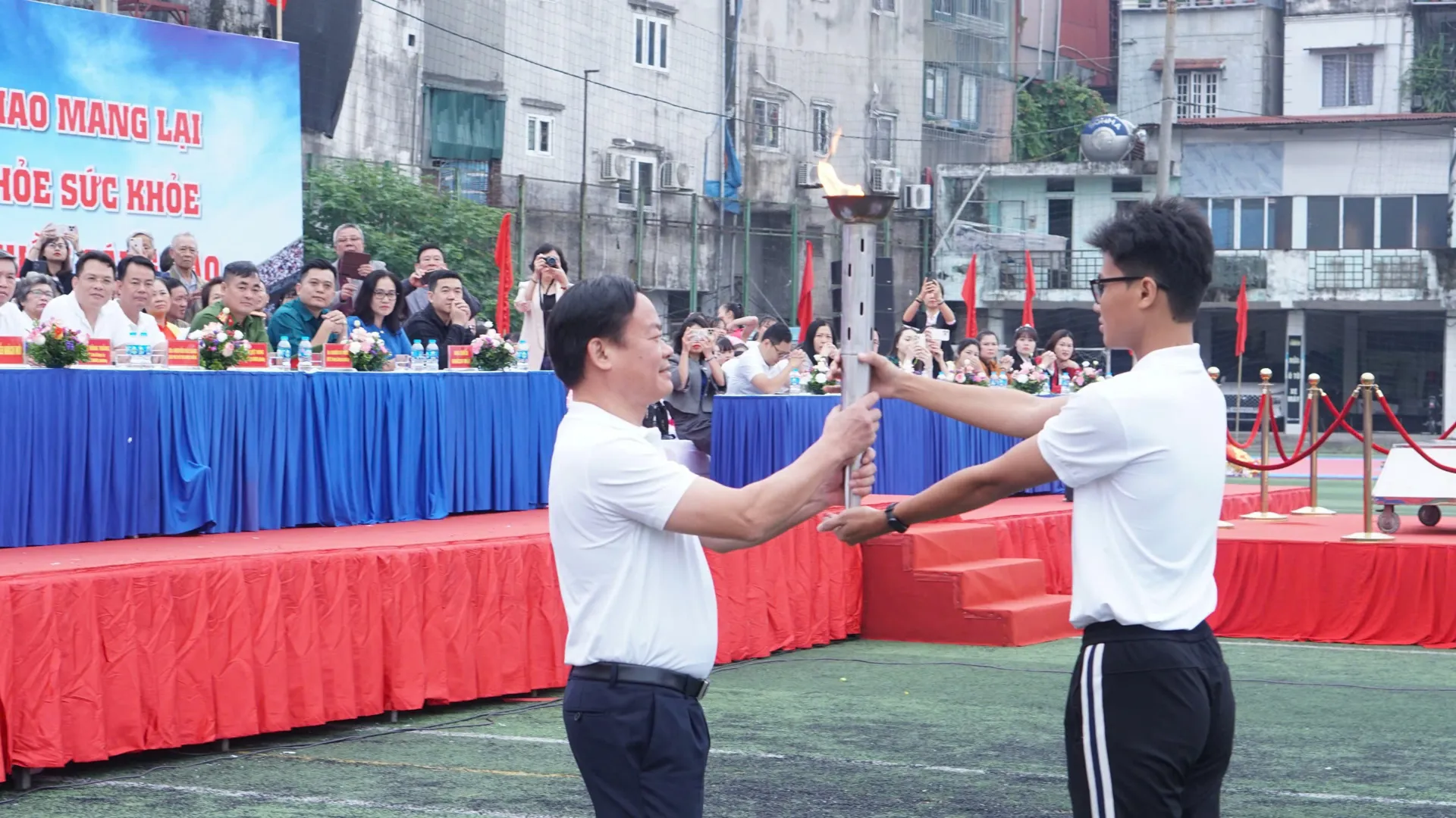 Bí thư Đảng ủy, Chủ tịch HĐND phường Hồng Hà Bùi Tuấn Anh thắp đuốc Khai mạc Đại hội TDTT phường Hồng Hà lần thứ I, năm 2025