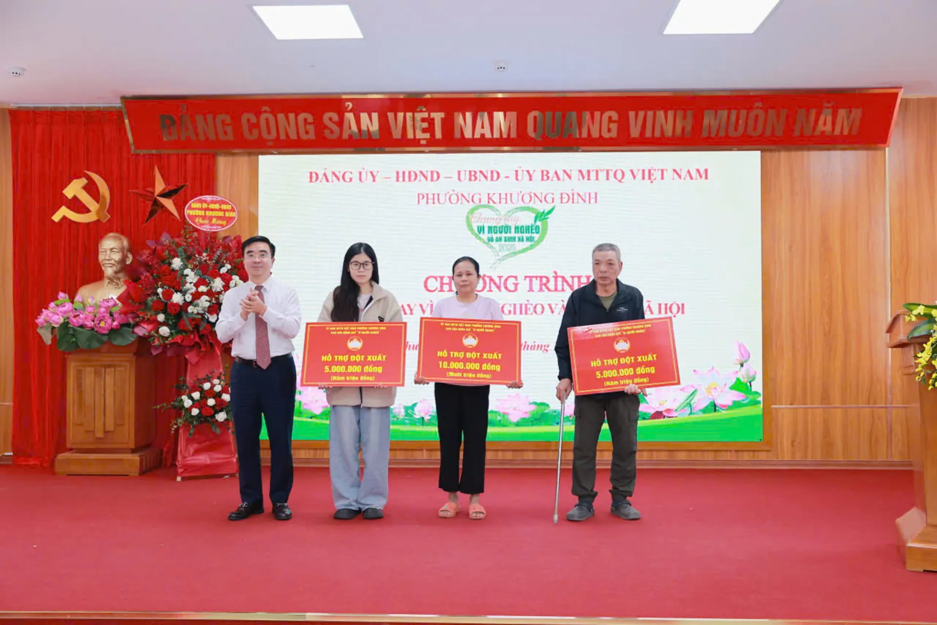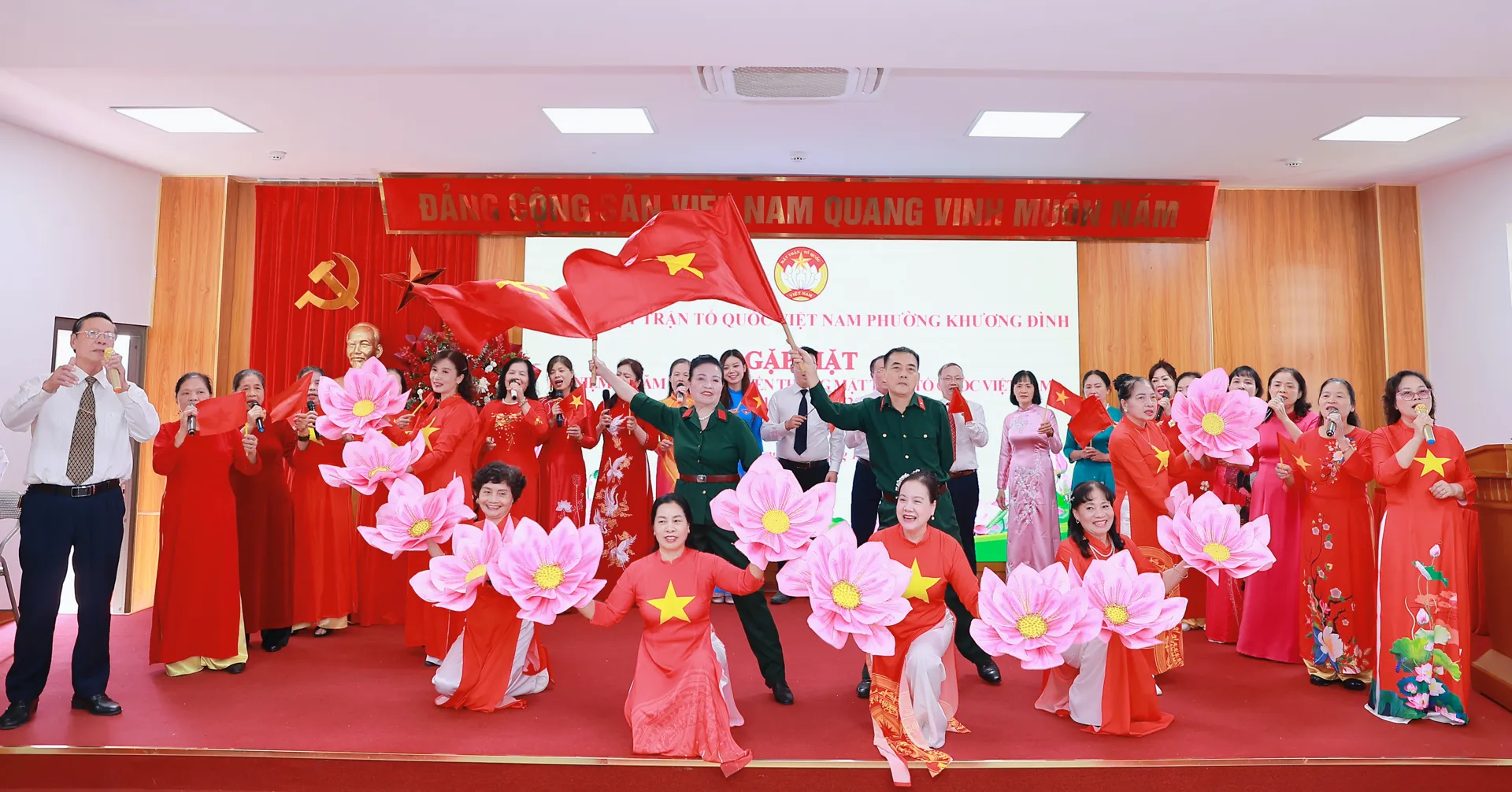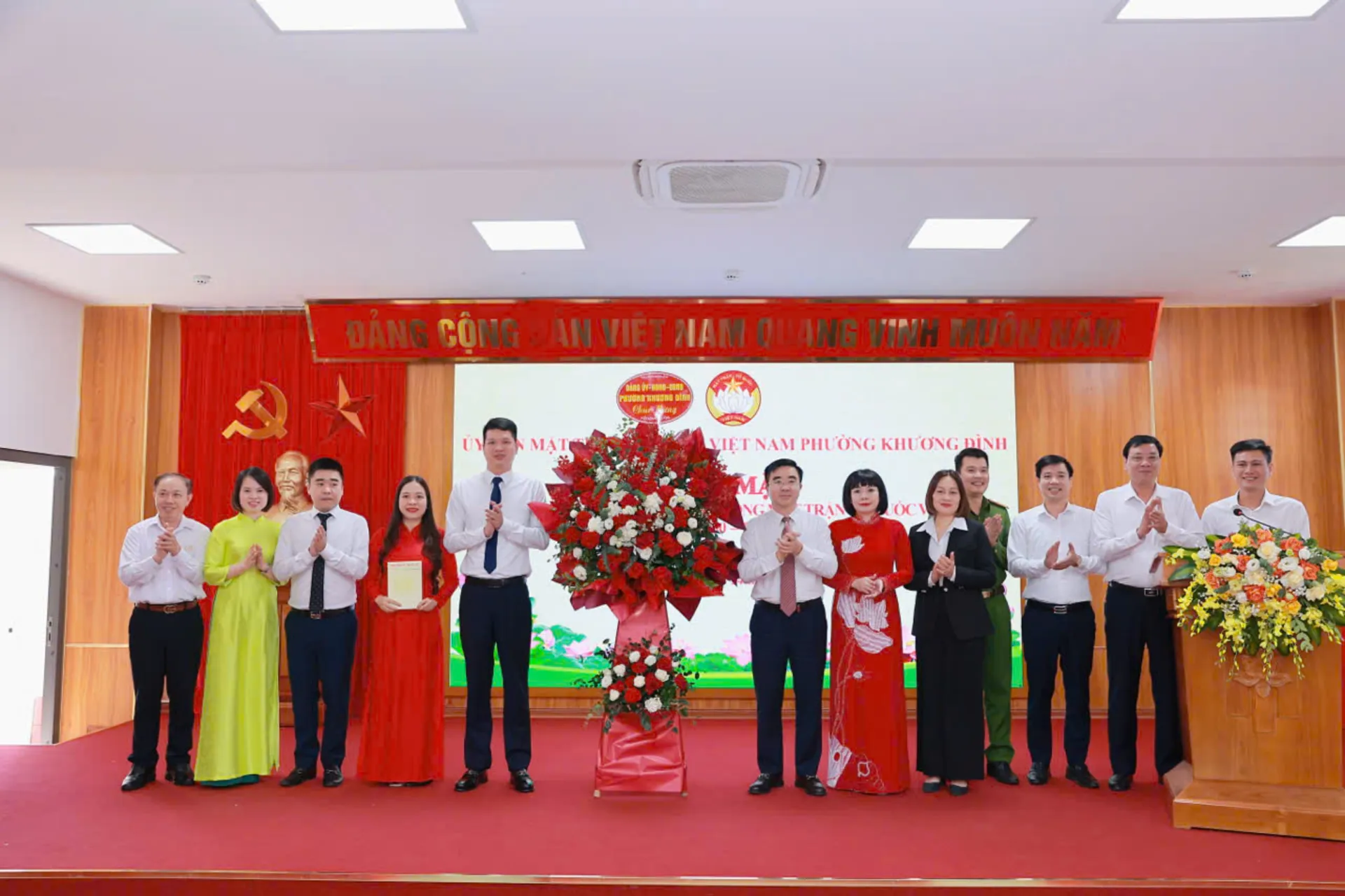 Lãnh đạo Đảng ủy - HĐND - UBND phường Khương Đình tặng hoa chúc mừng kỷ niệm 95 năm Ngày truyền thống MTTQ Việt Nam