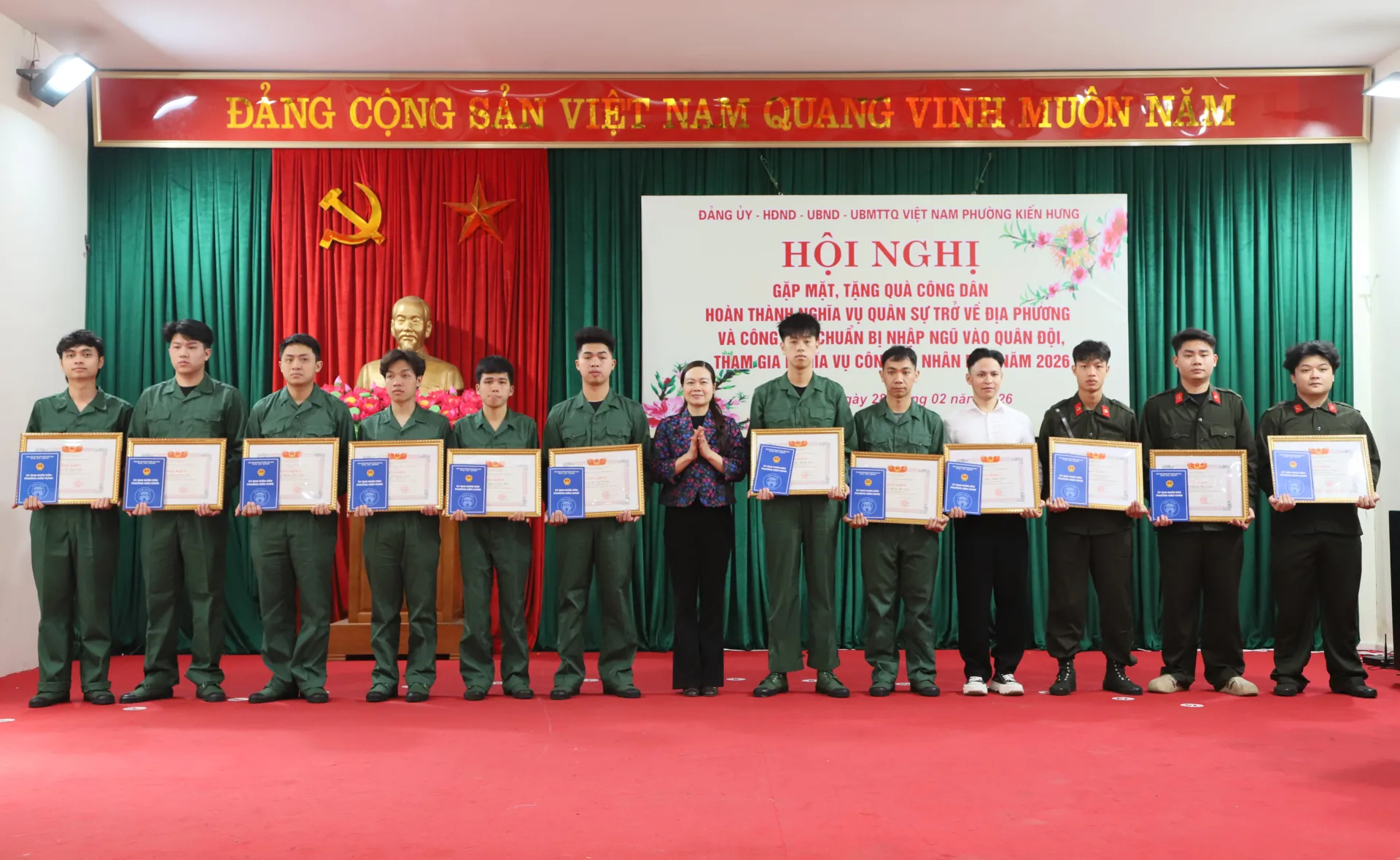Đối với các công dân chuẩn bị nhập ngũ, Bí thư Đảng ủy, Chủ tịch HĐND phường Kiến Hưng nhấn mạnh, đây là vinh dự, trách nhiệm thiêng liêng của tuổi trẻ đối với sự nghiệp xây dựng và bảo vệ Tổ quốc. Lãnh đạo phường tin tưởng các chiến sĩ mới sẽ nhanh chóng hòa nhập môi trường mới, nỗ lực học tập, rèn luyện, hoàn thành xuất sắc mọi nhiệm vụ được giao.