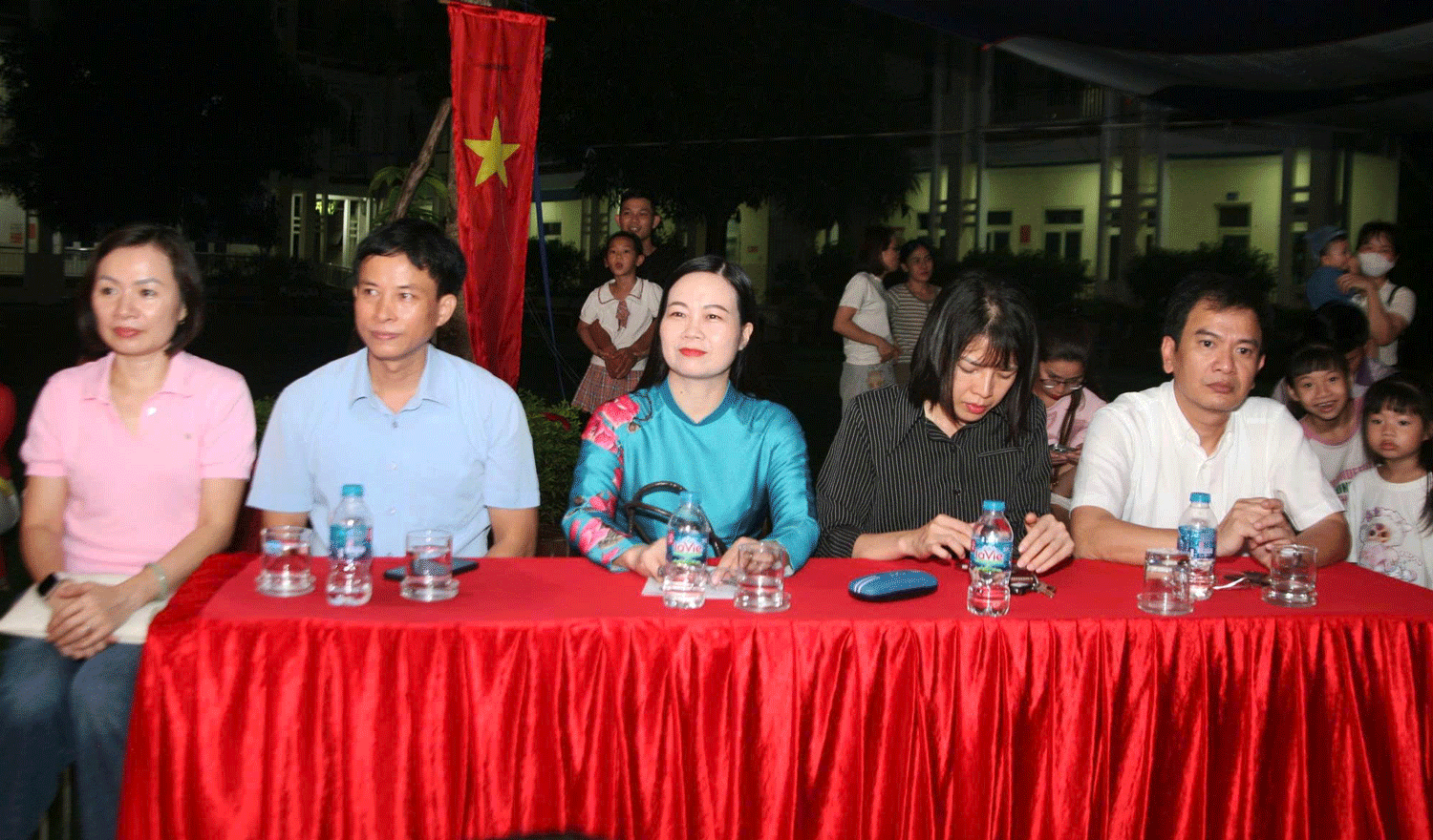 Kinhtedothi - Tối 21/8, Đảng ủy, HĐND, UBND, Ủy ban MTTQ phường Kiến Hưng phối hợp với Trung tâm Văn hóa và Thư viện Hà Nội đã tổ chức chương trình chiếu phim tuyên truyền chào mừng 80 năm Cách mạng Tháng Tám thành công và Quốc khánh 2/9.