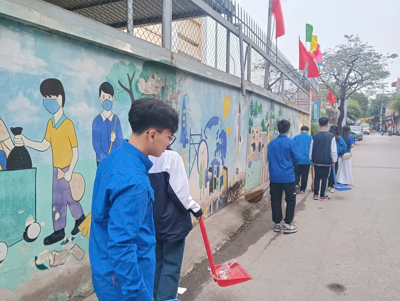 Thanh niên Lĩnh Nam tham gia vệ sinh đường phố.