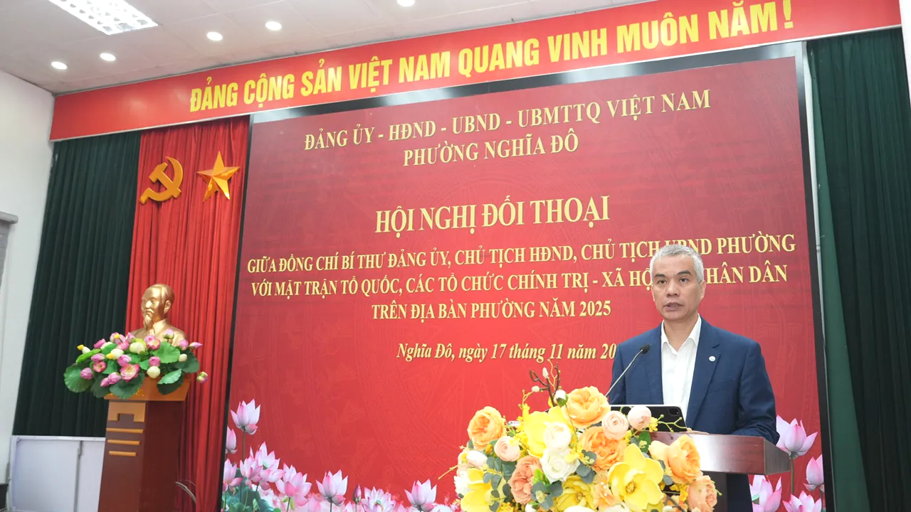 Kinhtedothi – Ngày 17/11, phường Nghĩa Đô đã tổ chức Hội nghị đối thoại giữa người đứng đầu cấp ủy, chính quyền với Mặt trận Tổ quốc, các tổ chức chính trị - xã hội và Nhân dân trên địa bàn.