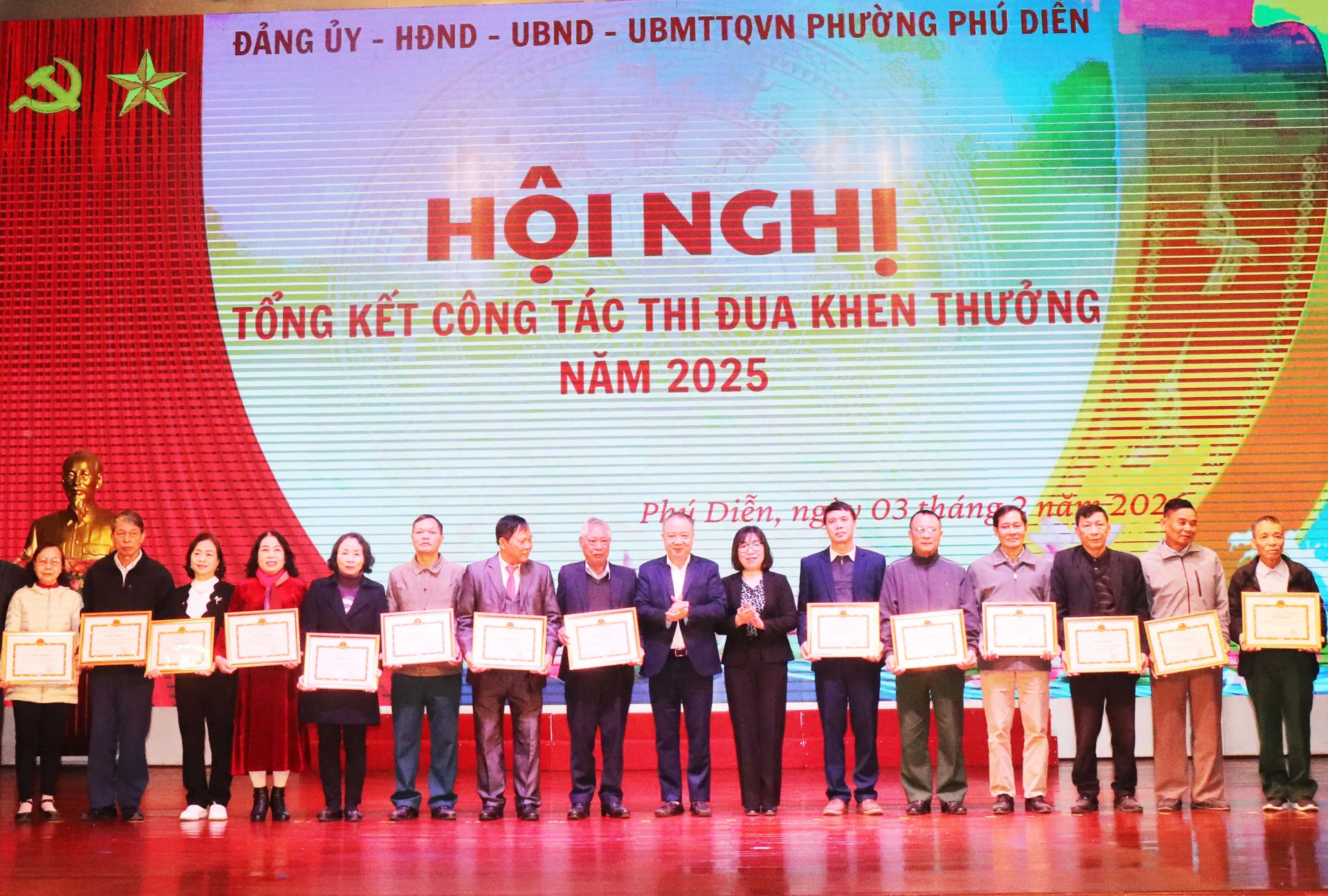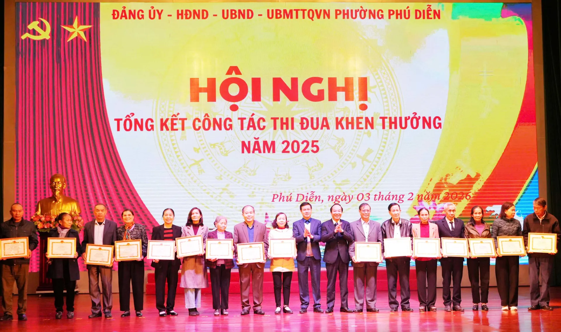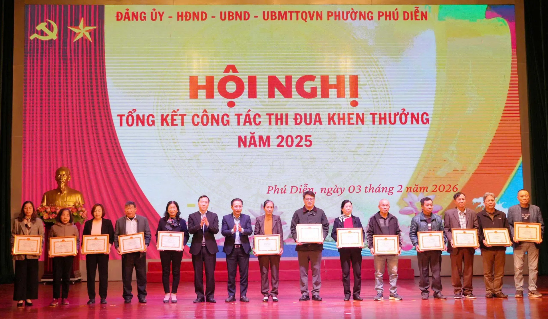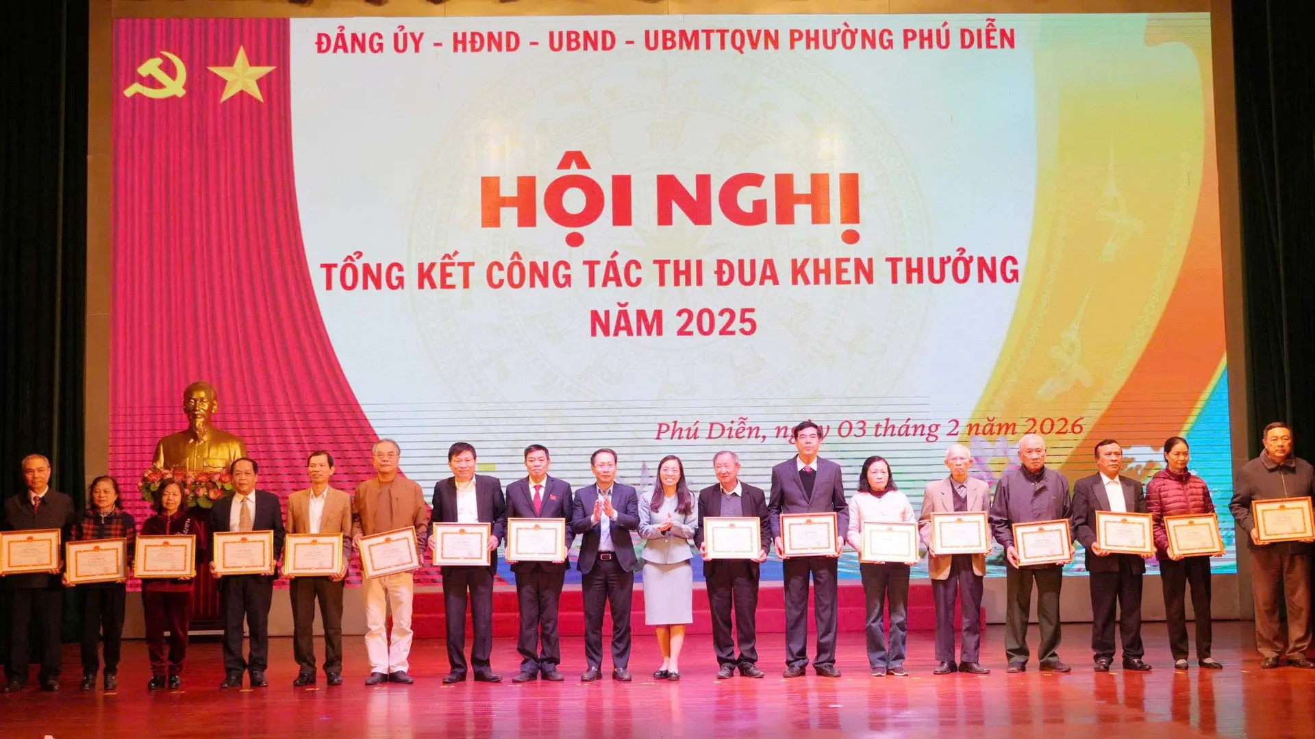 Tại hội nghị, phường Phú Diễn đã tặng Giấy khen cho 49 tập thể và 206 cá nhân đã có thành tích hoàn thành xuất sắc nhiệm vụ trong các phong trào thi đua năm 2025.