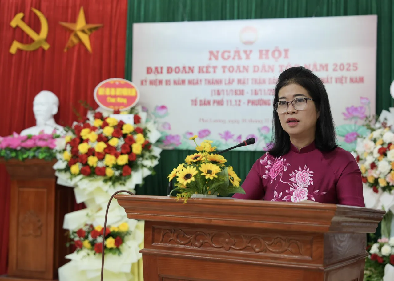 Phát biểu tại ngày hội, Phó Bí thư Thường trực Đảng ủy phường Phú Lương Đoàn thị Thu Hà cho biết, trong năm 2025, được sự quan tâm chỉ đạo của Đảng ủy, UBND, UB MTTQ phường Phú Lương, cán bộ và nhân dân hai tổ dân phố 11, 12 đã duy trì tốt khối đại đoàn kết, phát huy tinh thần đồng thuận trong xây dựng đời sống văn hóa và phát triển kinh tế - xã hội. Các hộ dân đồng lòng tham gia phong trào “Toàn dân đoàn kết xây dựng nông thôn mới, đô thị văn minh”, góp phần giữ gìn cảnh quan môi trường xanh – sạch – đẹp, nâng tỷ lệ đường ngõ được bê tông hóa lên 95%, 100% hộ sử dụng nước sạch và duy trì vệ sinh môi trường định kỳ.