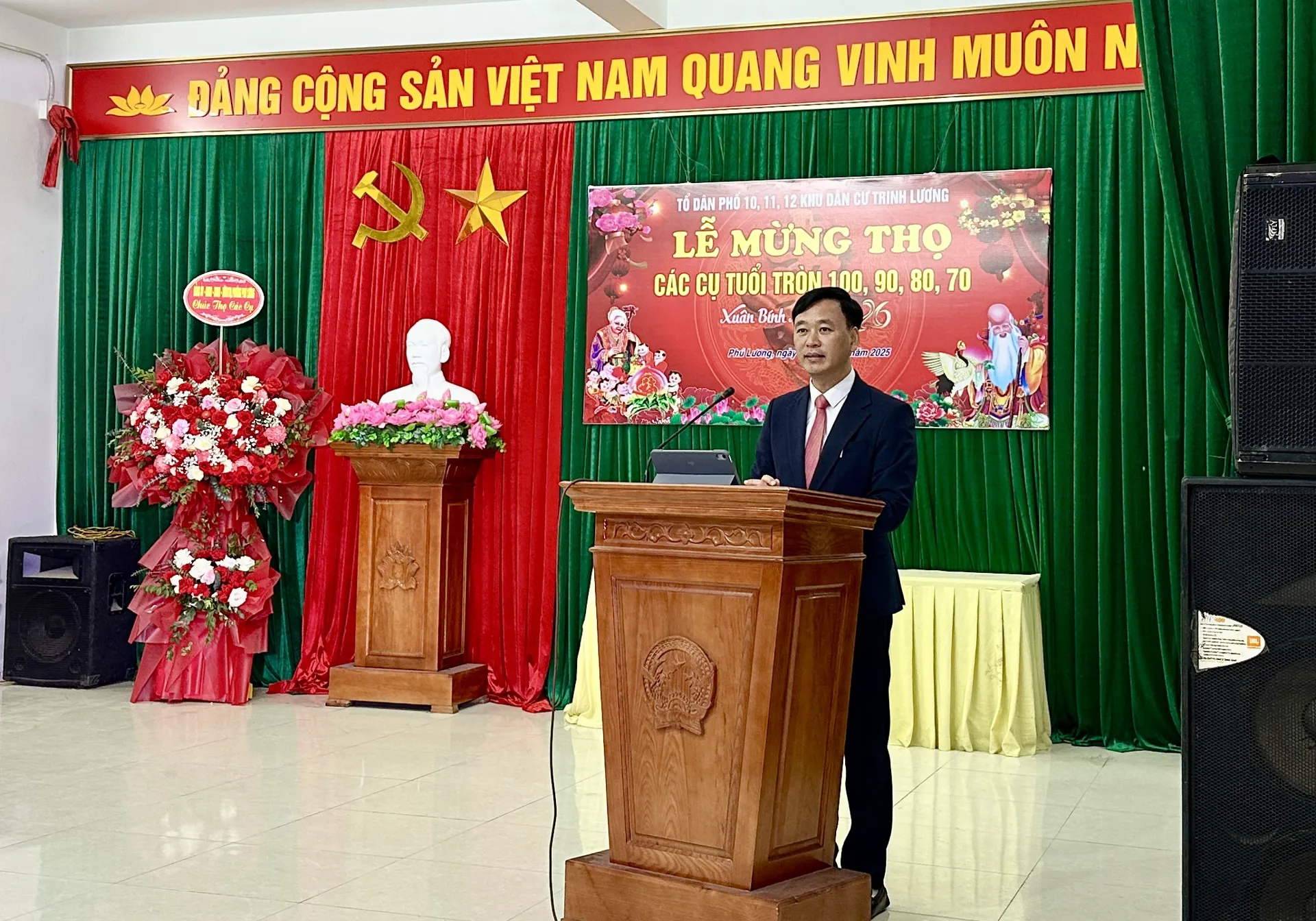 Bí thư Đảng uỷ, Chủ tịch HĐND phường Lương Mạnh Sơn phát biểu tại lễ mừng thọ.