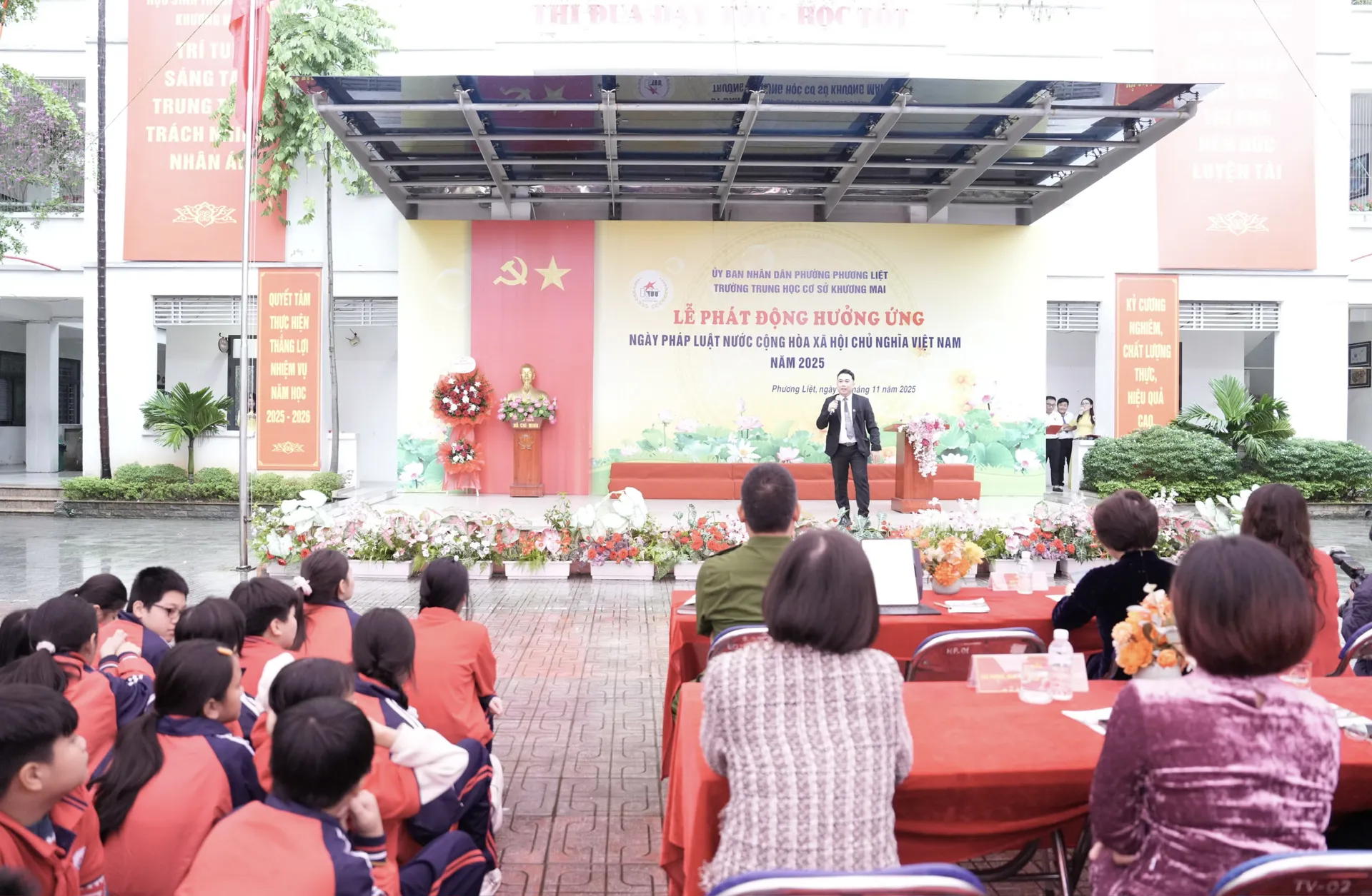 Kinhtedothi - Sáng 3/11, tại Trường THCS Khương Mai, UBND phường Phương Liệt đã tổ chức Lễ phát động hưởng ứng Ngày Pháp luật nước Cộng hòa xã hội chủ nghĩa Việt Nam năm 2025.