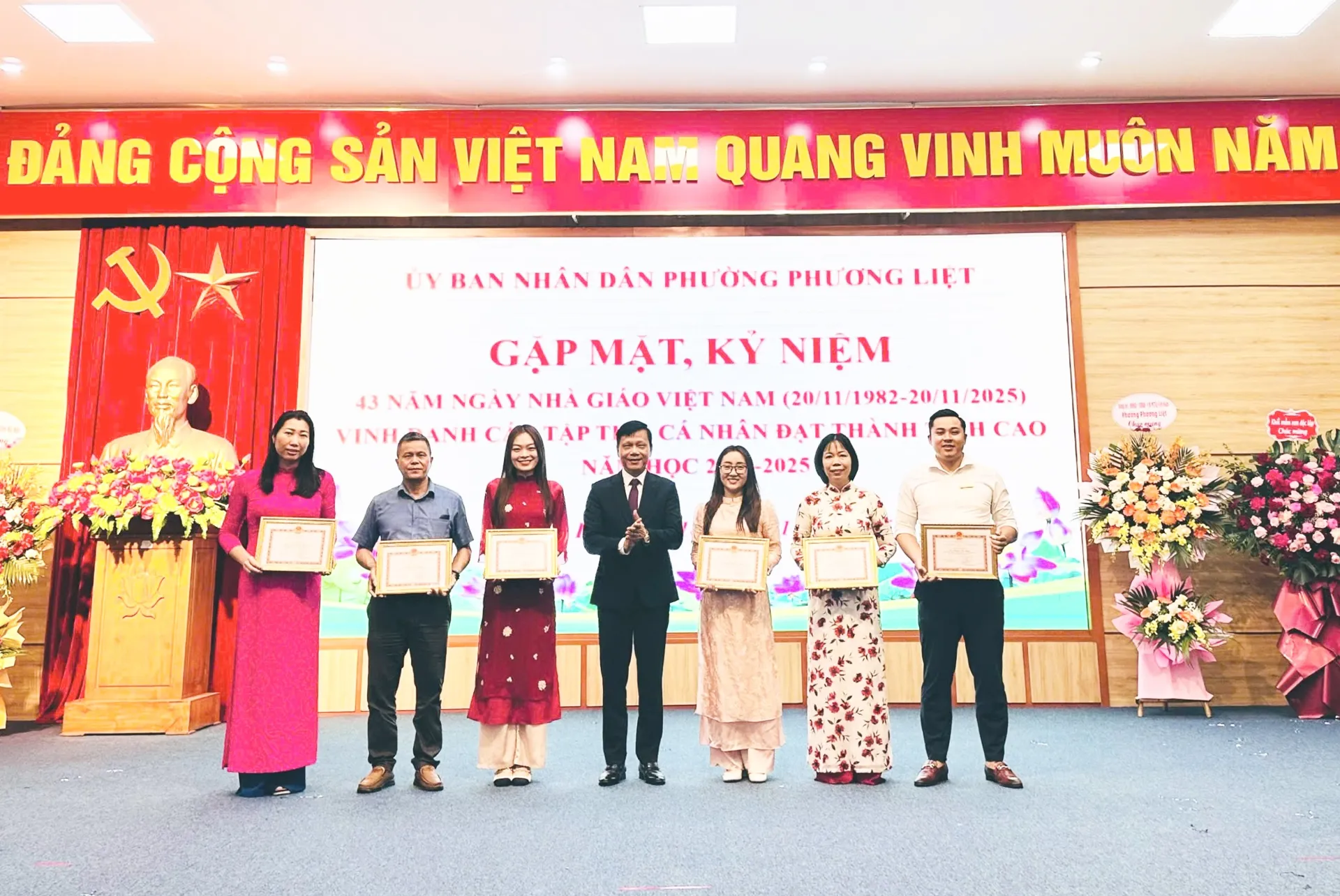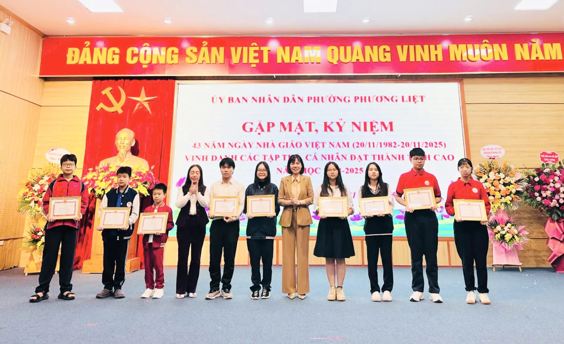 Kinhtedothi - Ngày 18/11, UBND phường Phương Liệt (Hà Nội) tổ chức buổi gặp mặt, kỷ niệm 43 năm Ngày Nhà giáo Việt Nam 20/11, đồng thời vinh danh các tập thể, cá nhân đạt thành tích cao trong năm học 2024 - 2025