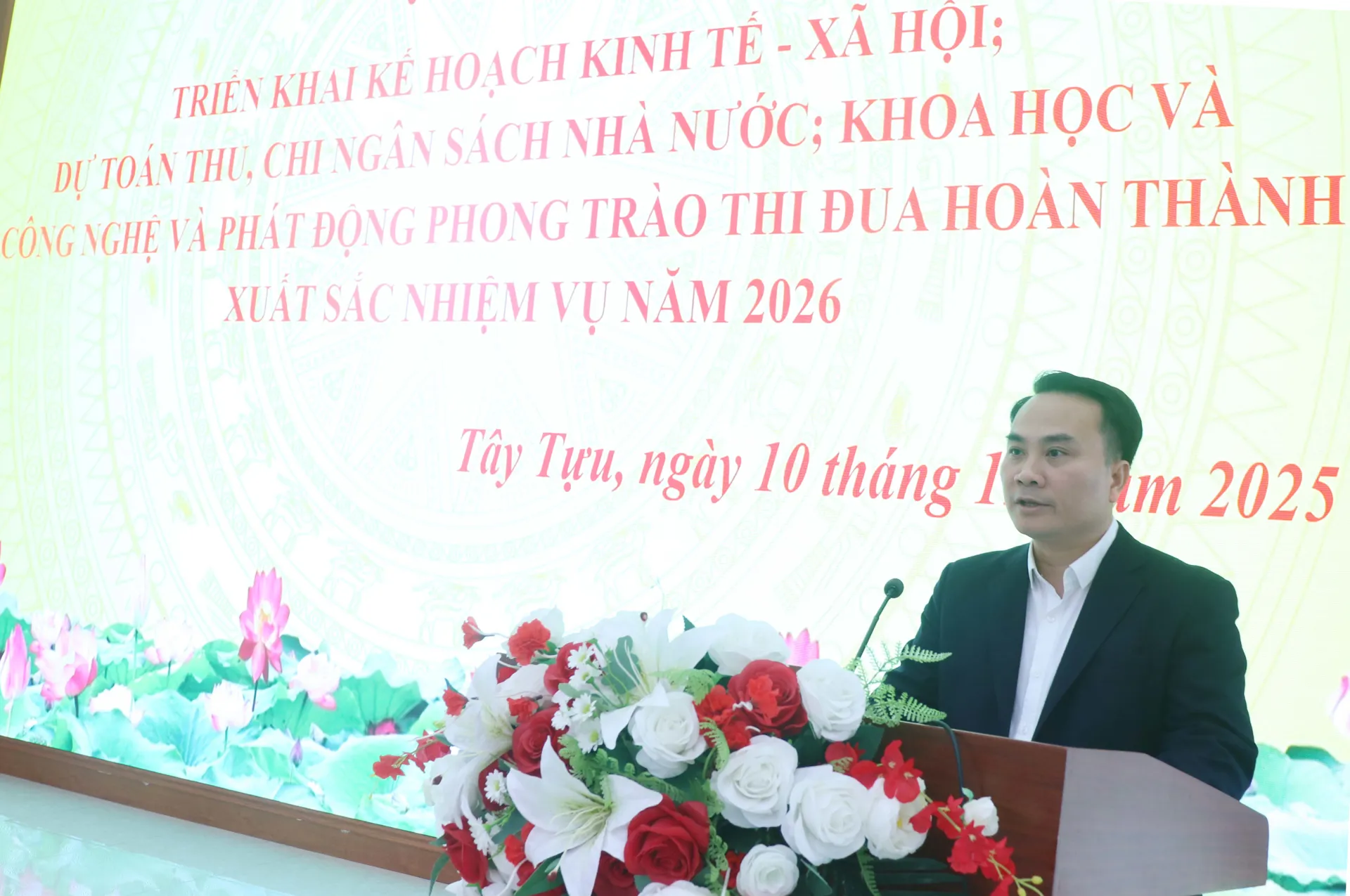 Phát biểu tại hội nghị, Chủ tịch UBND phường Tây Tựu Vũ Duy Hùng nhấn mạnh, năm 2026 có ý nghĩa là năm mở đầu cho một chu kỳ phát triển mới, với mục tiêu hướng tới mức tăng trưởng cao hơn, toàn diện, bền vững hơn; đặt ra những yêu cầu khắt khe hơn nhưng cũng mở ra nhiều thời cơ mới, vận hội mới để phường Tây Tựu khẳng định vị thế.