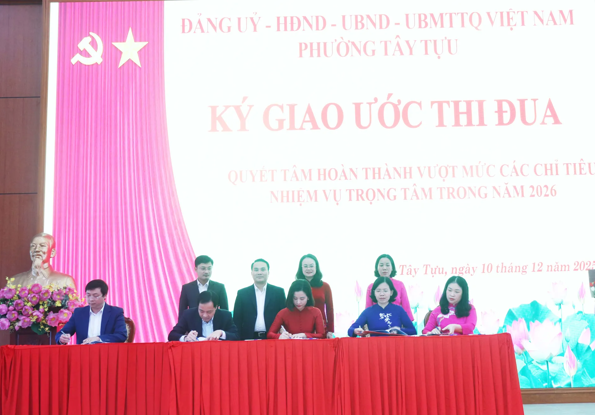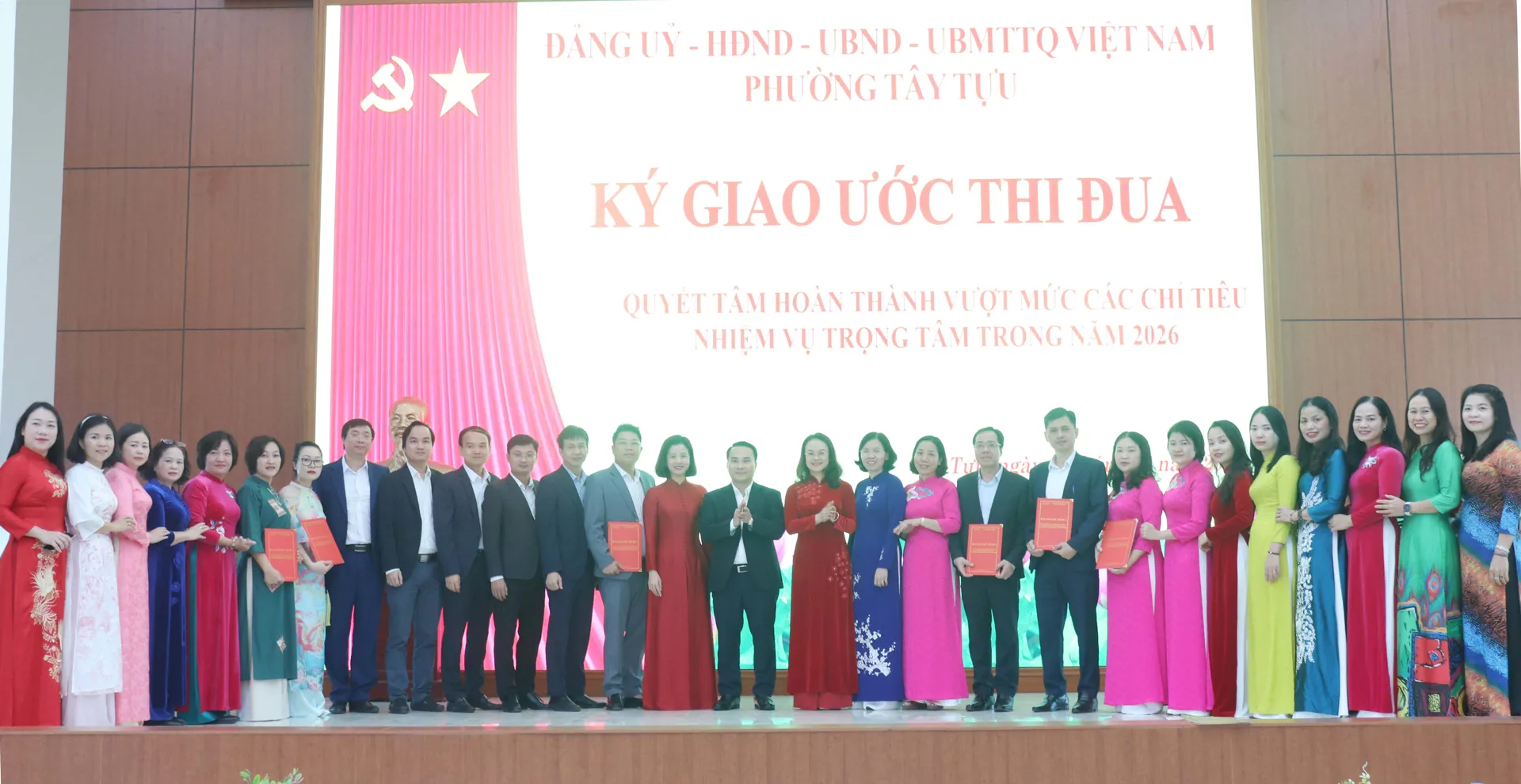 Lãnh đạo phường Tây Tựu kêu gọi toàn thể cán bộ, đảng viên, công chức, viên chức, chiến sĩ lực lượng vũ trang, giáo viên, học sinh, người lao động và Nhân dân phường Tây Tựu cùng chung sức, đồng hành cùng cấp ủy, chính quyền, quyết tâm hoàn thành xuất sắc toàn diện các chỉ tiêu kinh tế – xã hội năm 2026.
