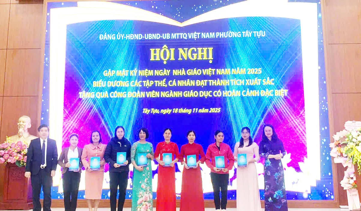 Kinhtedothi – Nhân dịp kỷ niệm Ngày Nhà giáo Việt Nam 20/11, phường Tây Tựu đã tổ chức gặp mặt; biểu dương các tập thể, cá nhân đạt thành tích xuất sắc; tặng quà cho 21 công đoàn viên ngành giáo dục có hoàn cảnh đặc biệt.