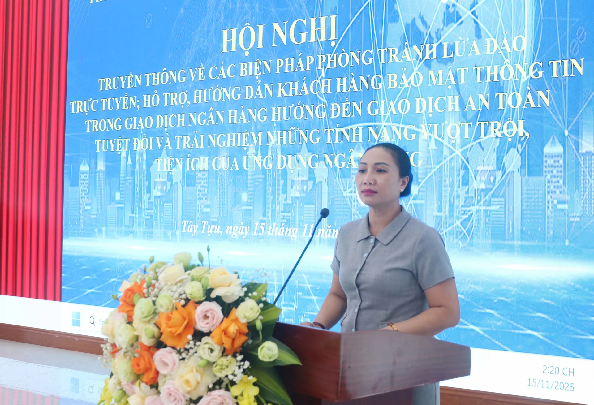 Phát biểu tại hội nghị, Phó Chủ tịch Ủy ban MTTQ, Chủ tịch Hội LHPN phường Tây Tựu Phạm Thị Diễm Hằng cho biết, trong bối cảnh chuyển đổi số đang diễn ra mạnh mẽ, hoạt động thanh toán trực tuyến, ngân hàng số ngày càng trở nên phổ biến và tiện lợi. Tuy nhiên, song hành với đó là sự gia tăng của các hình thức lừa đảo công nghệ cao, tinh vi và phức tạp, gây ảnh hưởng trực tiếp đến an toàn tài chính của người dân. Vì vậy, việc tổ chức truyền thông các biện pháp phòng tránh lừa đảo trực tuyến có ý nghĩa rất thiết thực và kịp thời, góp phần nâng cao nhận thức, trang bị kỹ năng nhận diện rủi ro, hướng dẫn người dân sử dụng dịch vụ ngân hàng một cách chủ động, an toàn.