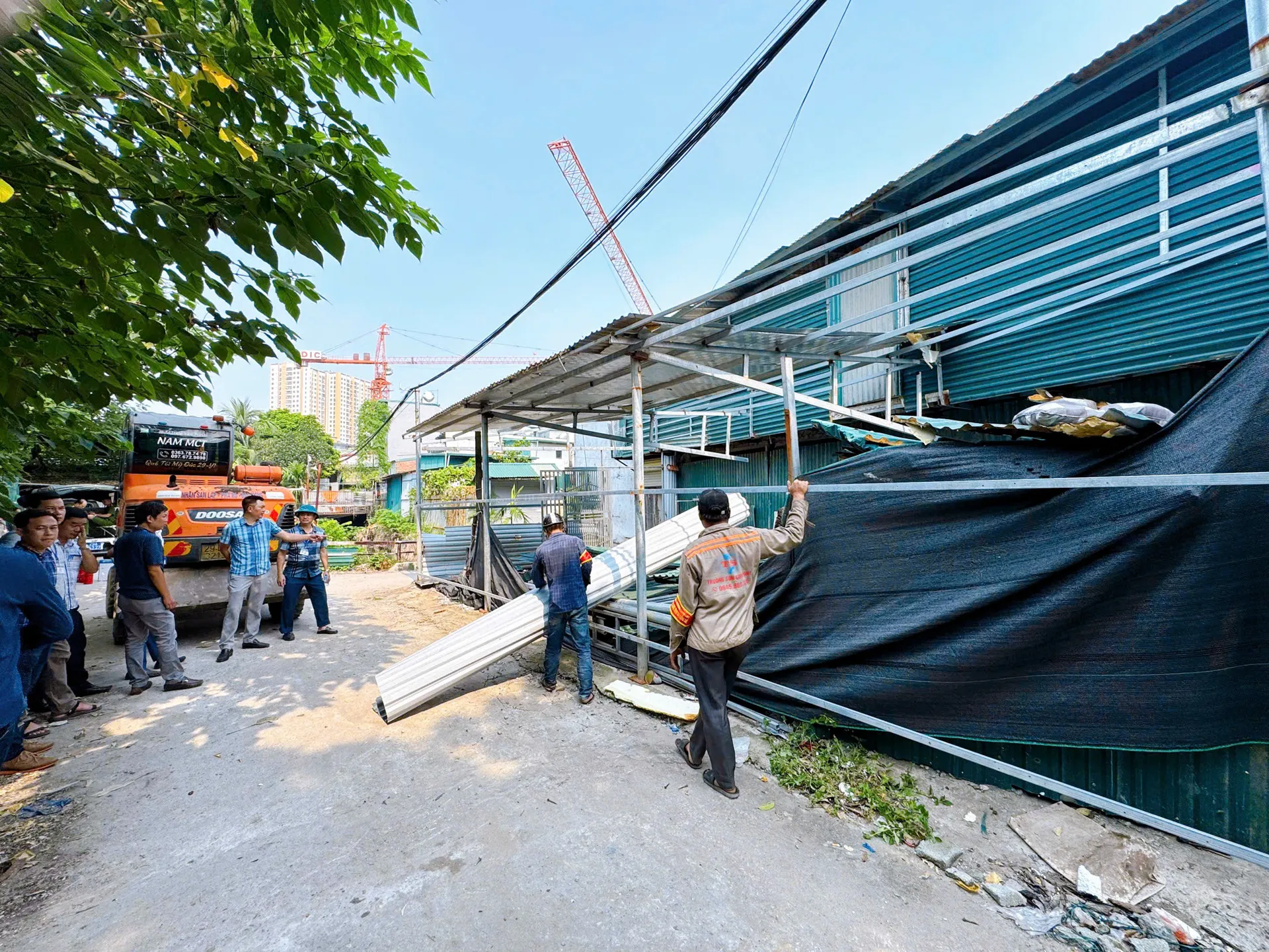 Tại các điểm cưỡng chế, UBND phường đã huy động đồng bộ lực lượng, phương tiện và nhân công tham gia. Lực lượng chức năng tiến hành chăng dây, bảo vệ hiện trường, kiểm soát chặt chẽ tình hình, bảo đảm tuyệt đối an toàn. Sau đó, tổ công tác đã tổ chức tháo dỡ toàn bộ hạng mục vi phạm, xử lý dứt điểm công trình, trả lại nguyên trạng diện tích đất do phường quản lý. Quá trình cưỡng chế diễn ra an toàn, đúng quy định, nhận được sự đồng thuận và ủng hộ của Nhân dân khu vực, tạo niềm tin vào sự nghiêm minh của pháp luật và quyết tâm của chính quyền trong việc lập lại trật tự kỷ cương.