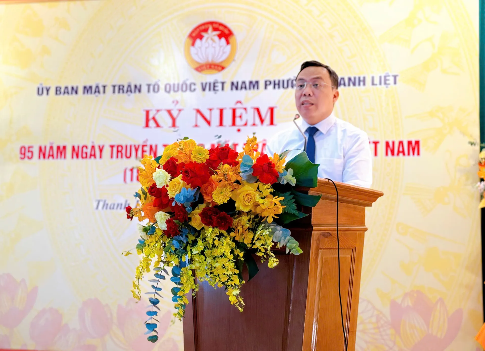 Lễ kỷ niệm 95 năm Ngày truyền thống MTTQ Việt Nam là dịp để cán bộ và Nhân dân phường Thanh Liệt phát huy truyền thống đại đoàn kết, củng cố thêm niềm tin, ý chí quyết tâm chung sức, đồng lòng xây dựng phường ngày càng văn minh, hiện đại.