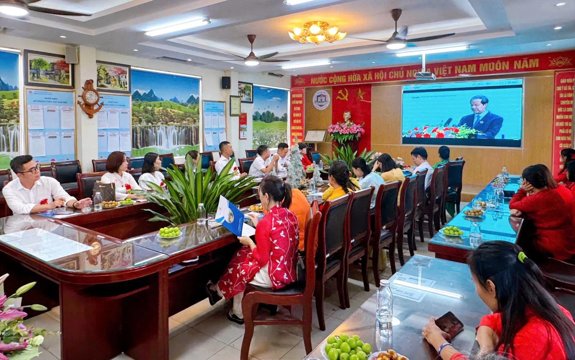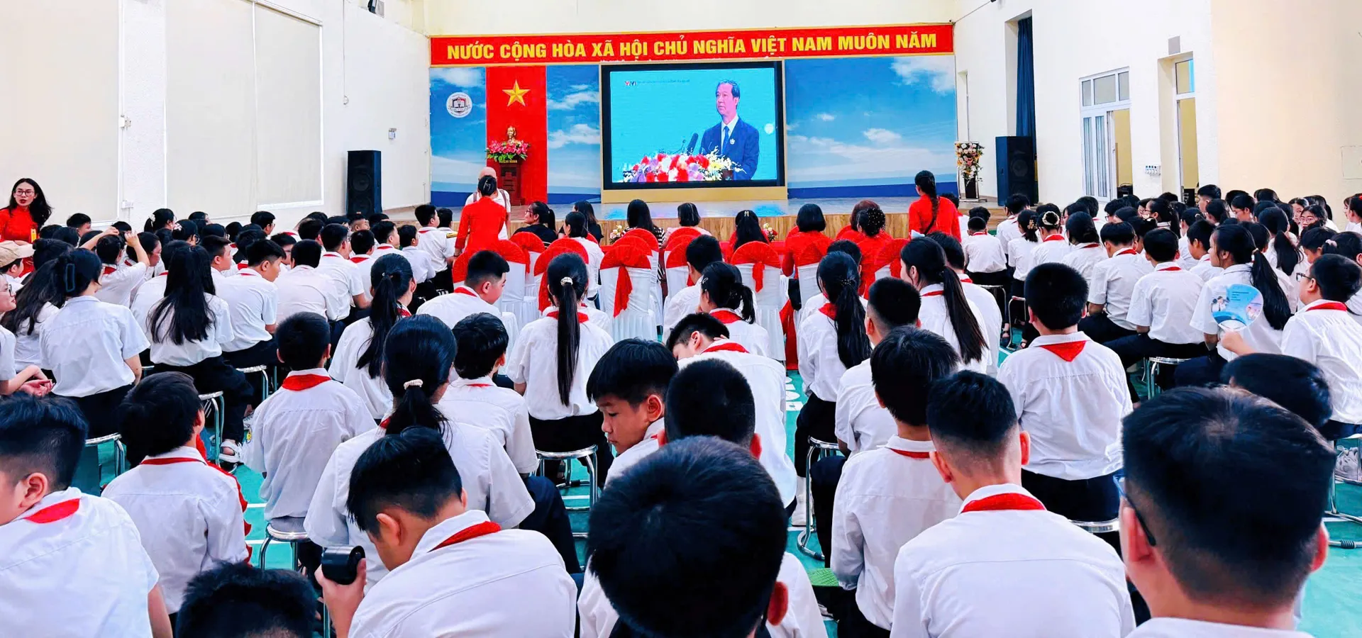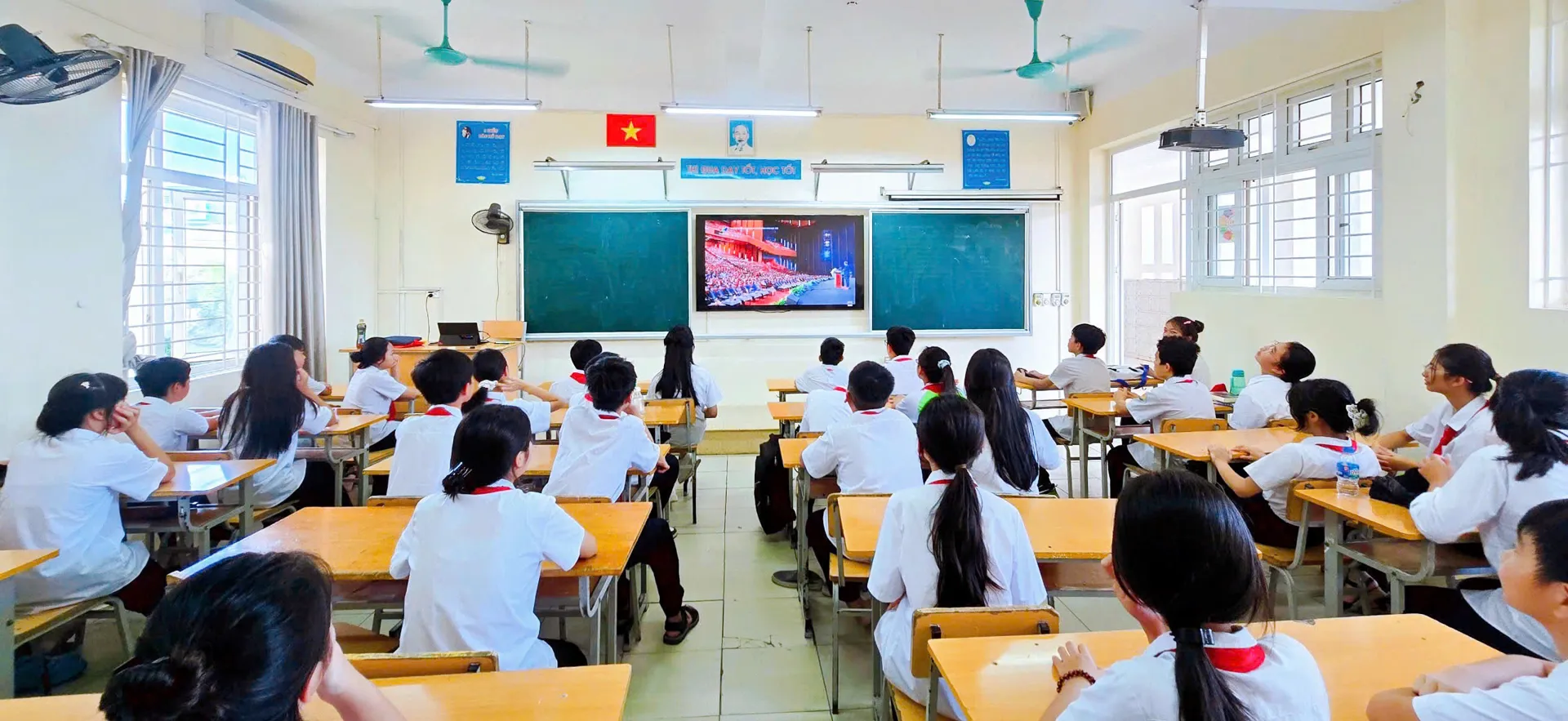 Ngay sau phần khai giảng trực tiếp tại Trường, toàn thể cán bộ, giáo viên và học sinh đã cùng tham dự lễ Khai giảng trực tuyến do Bộ GD&ĐT tổ chức, kết nối đến tất cả các cơ sở giáo dục trong cả nước. Sự kết hợp giữa trực tiếp và trực tuyến đã tạo nên không khí khai trường trang trọng, ý nghĩa, vừa mang tính truyền thống, vừa thể hiện tinh thần đổi mới, hội nhập của ngành giáo dục trong giai đoạn mới.