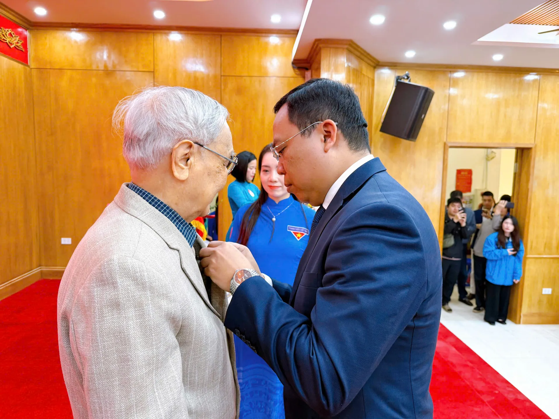 Lãnh đạo phường Thanh Liệt trao Huy hiệu Đảng cho các đảng viên lão thành.