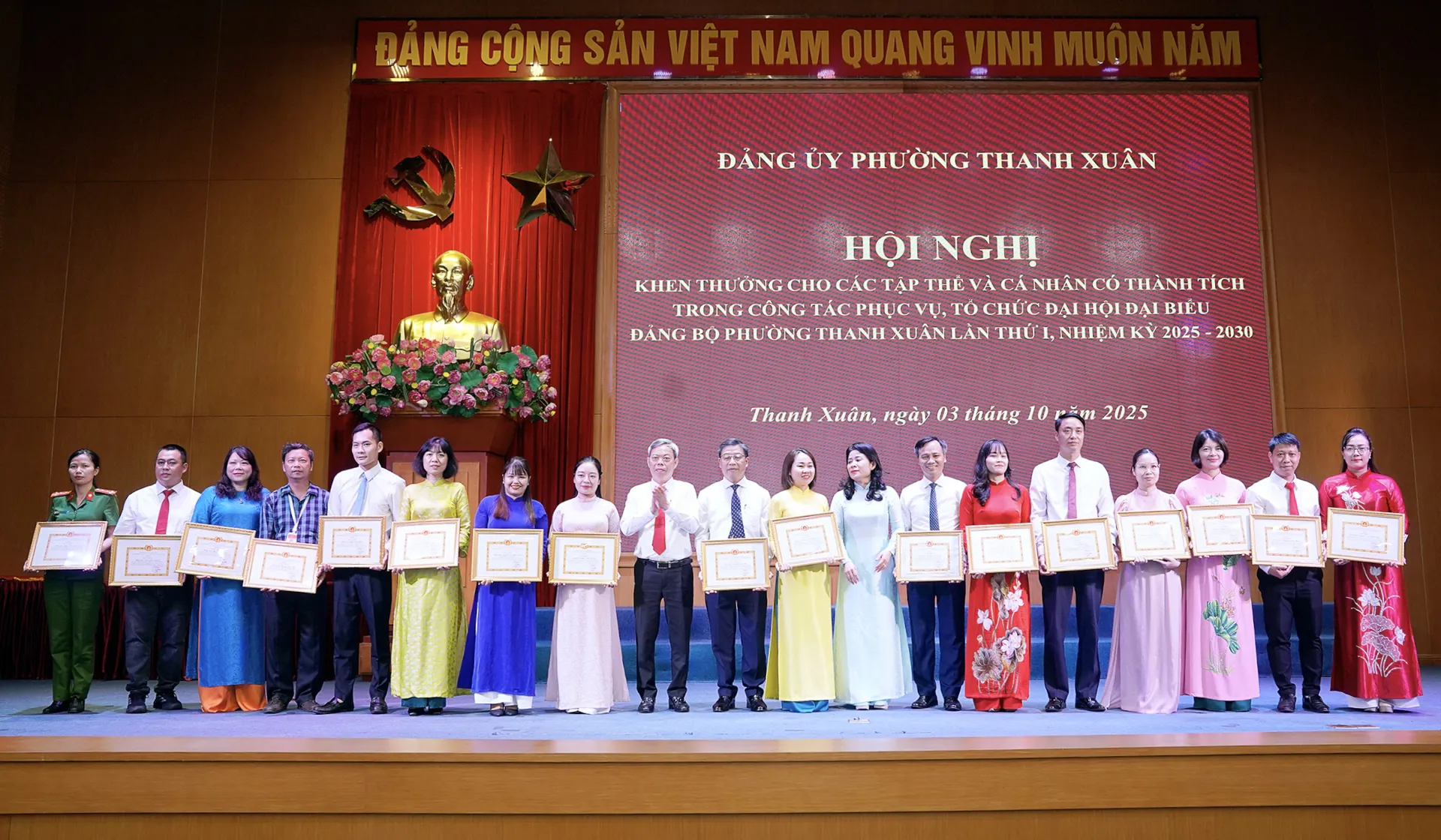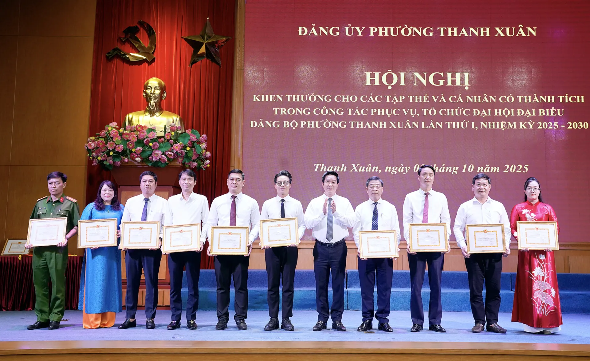 Nhân dịp này, Đảng ủy phường Thanh Xuân đã khen thưởng 10 tập thể và 18 cá nhân có thành tích xuất sắc trong công tác phục vụ, tổ chức Đại hội đại biểu Đảng bộ phường Thanh Xuân lần thứ I, nhiệm kỳ 2025-2030. UBND phường Thanh Xuân khen thưởng 15 tập thể và 94 cá nhân có thành tích xuất sắc trong các hoạt động kỷ niệm 80 năm Cách mạng Tháng Tám thành công và Quốc khánh 2/9m.