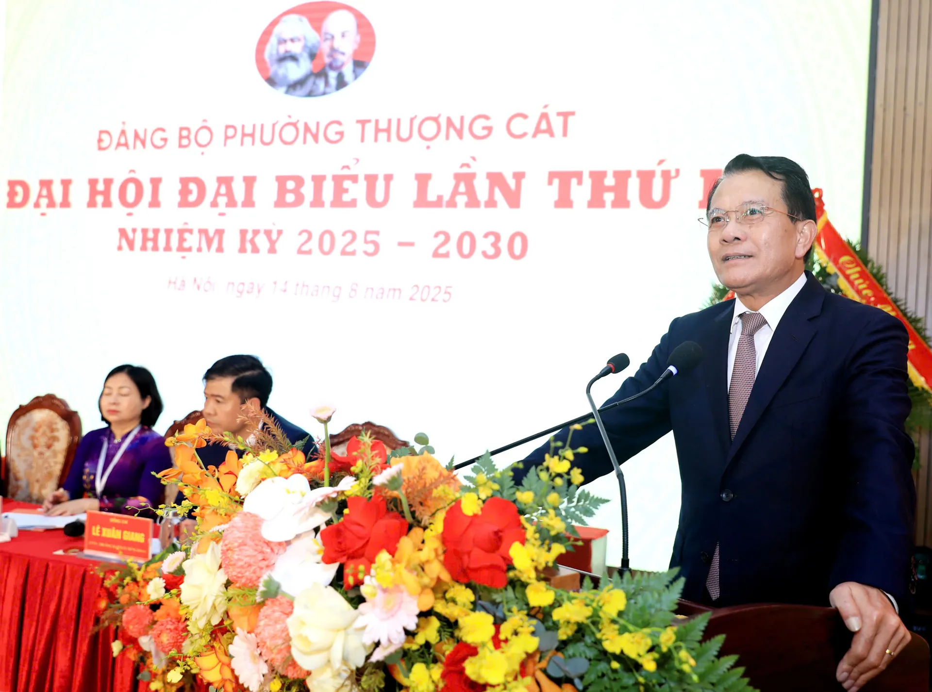 Kinhtedothi - Chiều 14/8, Đảng bộ phường Thượng Cát (Hà Nội) long trọng tổ chức Đại hội đại biểu lần thứ I, nhiệm kỳ 2025 - 2030. Ủy viên Ban Thường vụ, Chủ nhiệm Ủy ban Kiểm tra Thành ủy Hà Nội Hoàng Trọng Quyết dự và phát biểu chỉ đạo tại Đại hội. Cùng dự có đại diện lãnh đạo các sở, ngành TP; lãnh đạo quận Bắc Từ Liêm (cũ) và 235 đại biểu đại diện cho 976 đảng viên của 40 chi, Đảng bộ cơ sở trực thuộc trong toàn Đảng bộ phường.