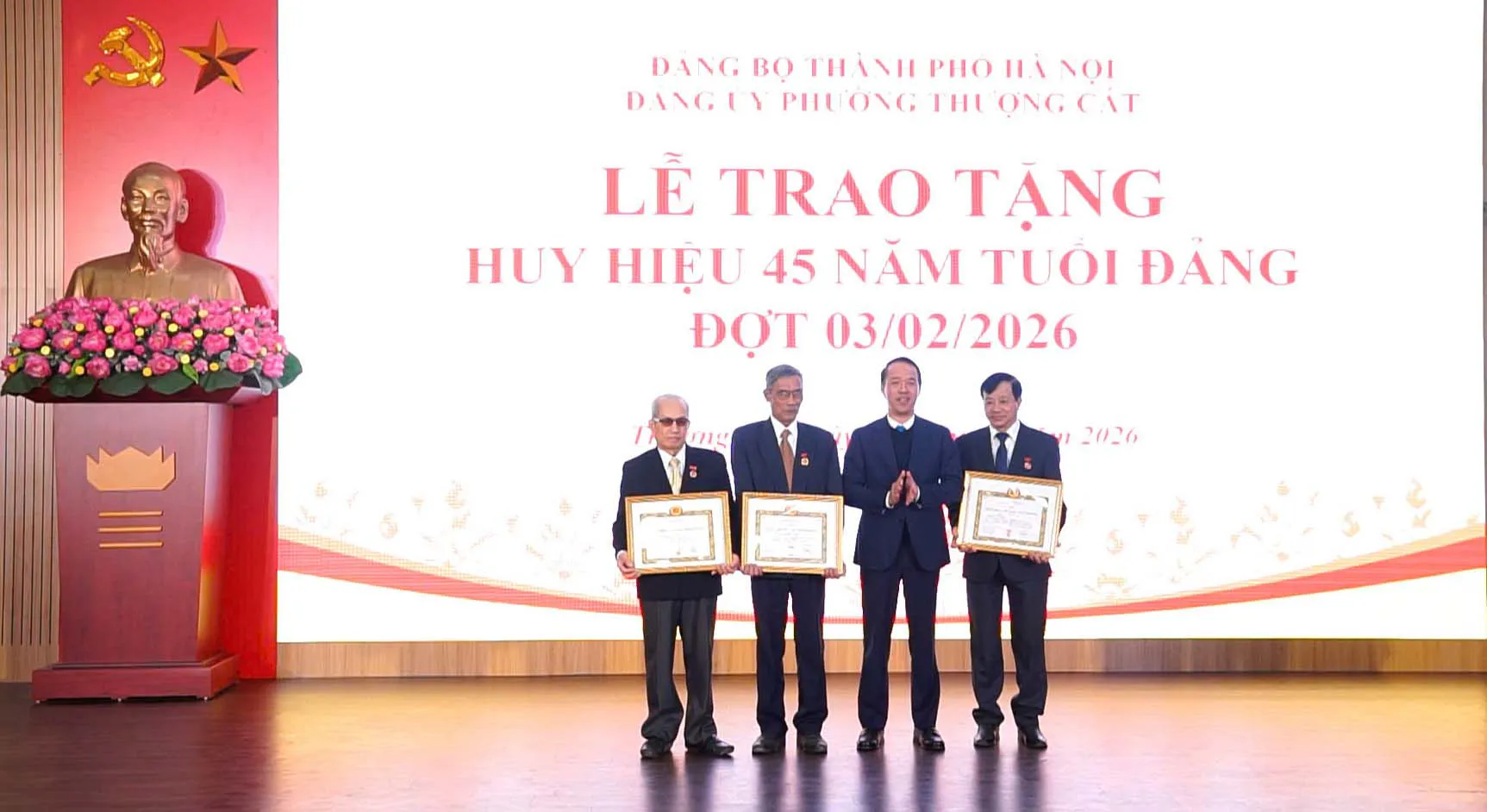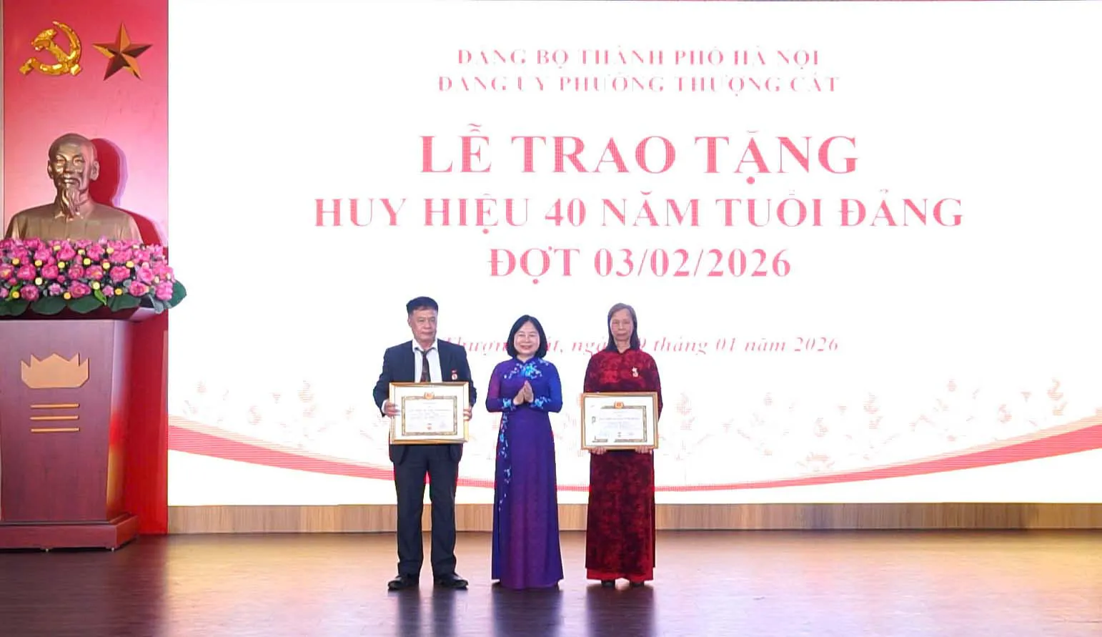 Kinhtedothi - Ngày 29/1, Đảng ủy phường Thượng Cát tổ chức Lễ kỷ niệm 96 năm ngày thành lập Đảng Cộng sản Việt Nam (3/2/1930 - 3/2/2026); trao tặng Huy hiệu Đảng đợt 3/2/2026; tuyên dương Bí thư chi bộ xuất sắc năm 2026.