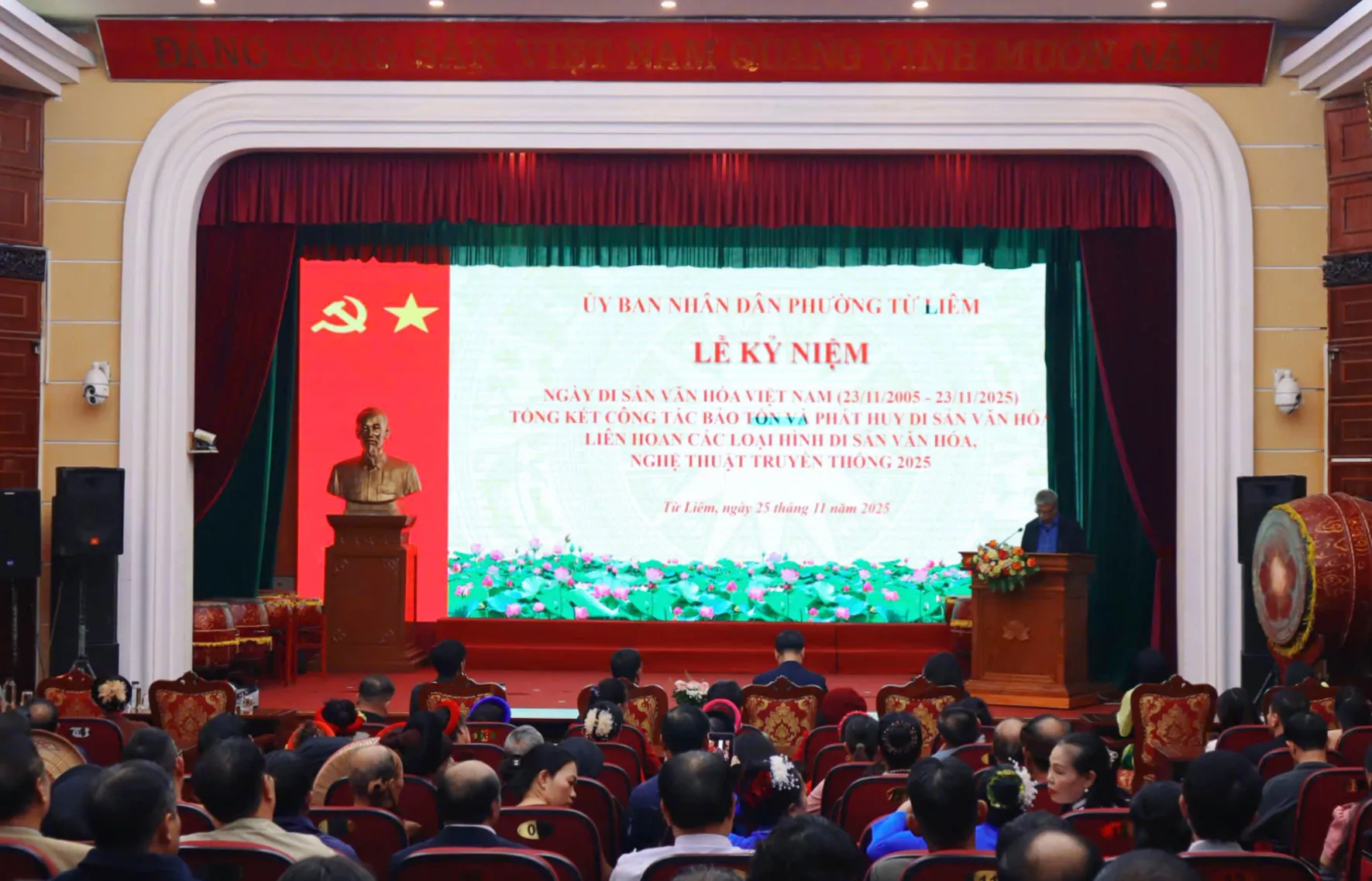 Kinhtedothi - Chiều 25/11, UBND phường Từ Liêm tổ chức Lễ kỷ niệm ngày Di sản văn hóa Việt Nam (23/11); Tổng kết công tác bảo tồn và phát huy giá trị Di sản văn hóa và Liên hoan các loại hình di sản văn hoá phi vật thể, nghệ thuật truyền thống phường Từ Liêm năm 2025.