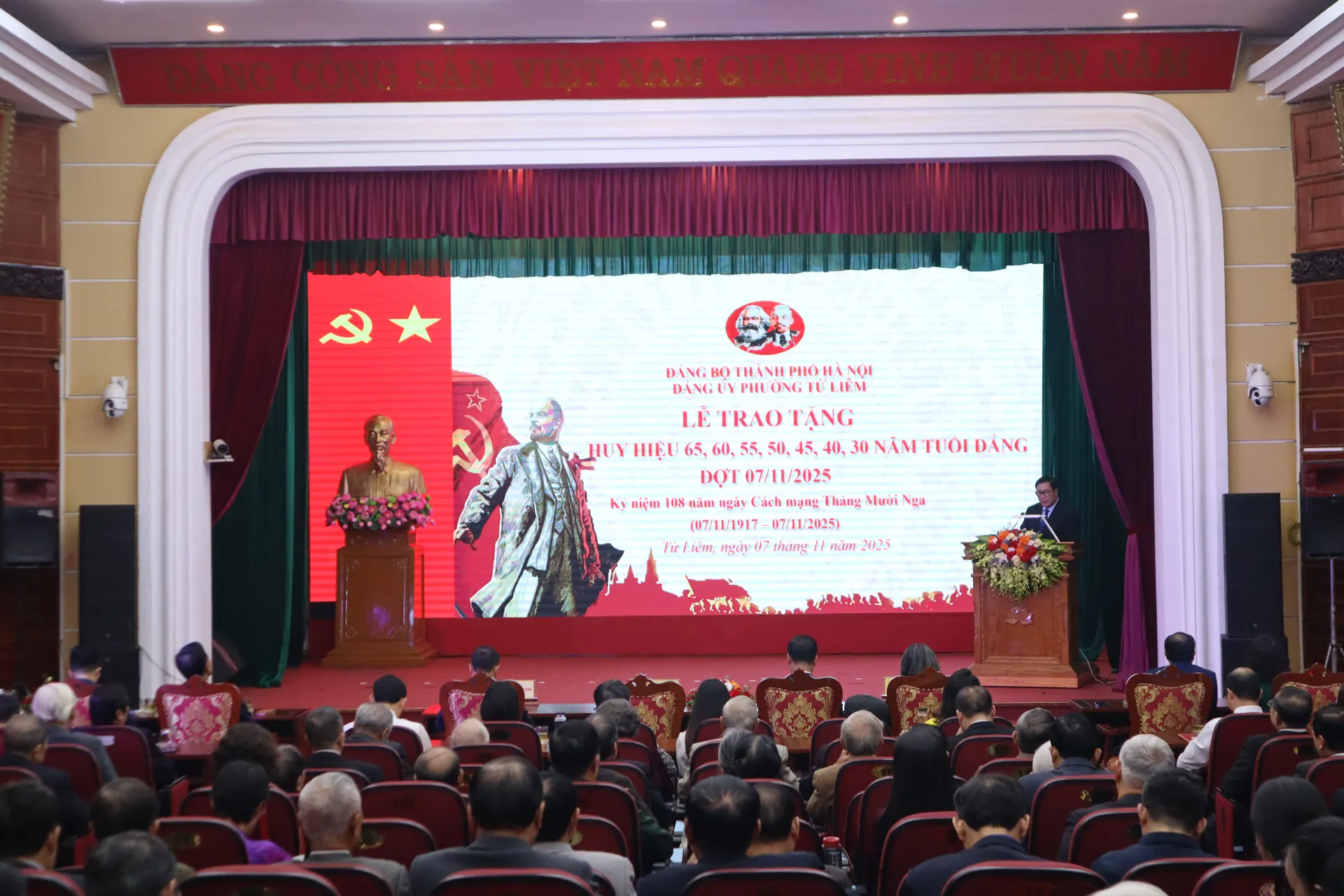 Kinhtedothi - Hướng về kỷ niệm 108 năm Cách mạng Tháng Mười Nga vĩ đại, chào mừng thành công Đại hội Đảng bộ thành phố Hà Nội, tiến tới Đại hội đại biểu toàn quốc lần thứ XIV của Đảng, ngày 7/11, Đảng ủy phường Từ Liêm đã tổ chức Lễ trao tặng Huy hiệu Đảng đợt 07/11/2025 cho các đồng chí đảng viên tiêu biểu.