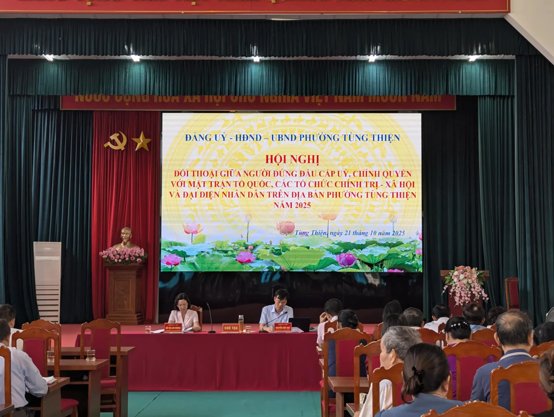 Phường Tùng Thiện tổ chức hội nghị đối thoại với nhân dân và các vấn đề được người dân quan tâm.